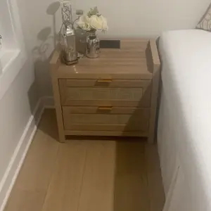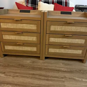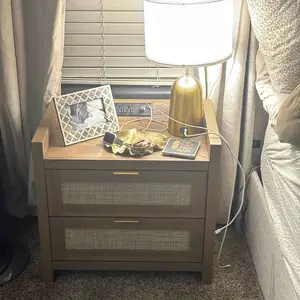 ·【Upgraded Rattan Nightstand with Type-C Port】: Rattan nightstand set of 2 with 2Power Outlets, 1 Type-C Port (Note: only for iPhone charging cable fast charging), 1 USB Port will fully satisfy your charging needs. Charging Port in the Baffle, rather than on the table: You don’t have to worry about electric shock caused by spilled coffee, water, etc. Please Note: The nightstand are wider, but the height is 22 inches, so if you have a taller bed, please compare the height of your bed before purchasing.