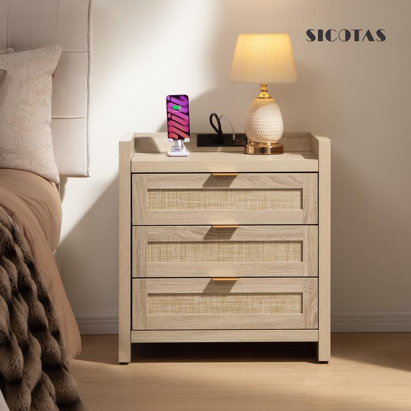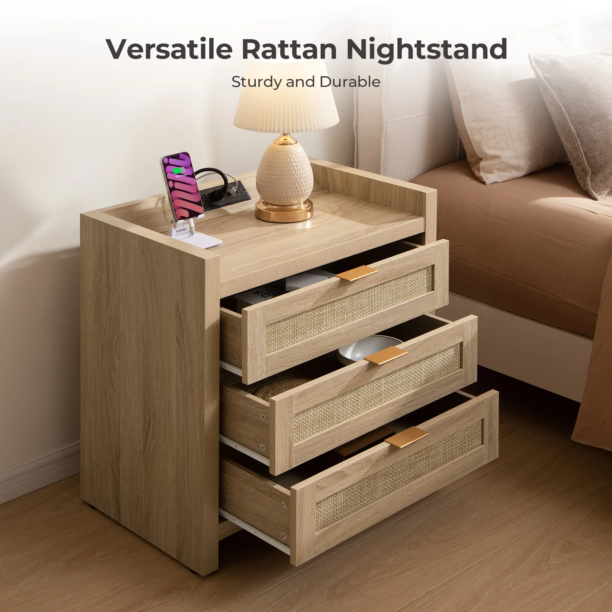 ·【Versatile Side Table】: With its tall stature and three spacious drawers, this end table is designed to meet a variety of storage needs. Whether it's used as a nightstand in the bedroom, an end table in the living room, or a side table in the study, its classic design with rattan accents blends seamlessly with various decor styles, adding both function and style to any room.