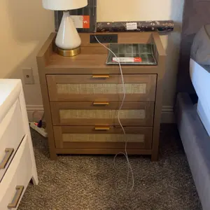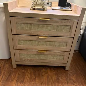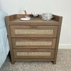 ·【Versatile Side Table】: With its tall stature and three spacious drawers, this end table is designed to meet a variety of storage needs. Whether it's used as a nightstand in the bedroom, an end table in the living room, or a side table in the study, its classic design with rattan accents blends seamlessly with various decor styles, adding both function and style to any room.