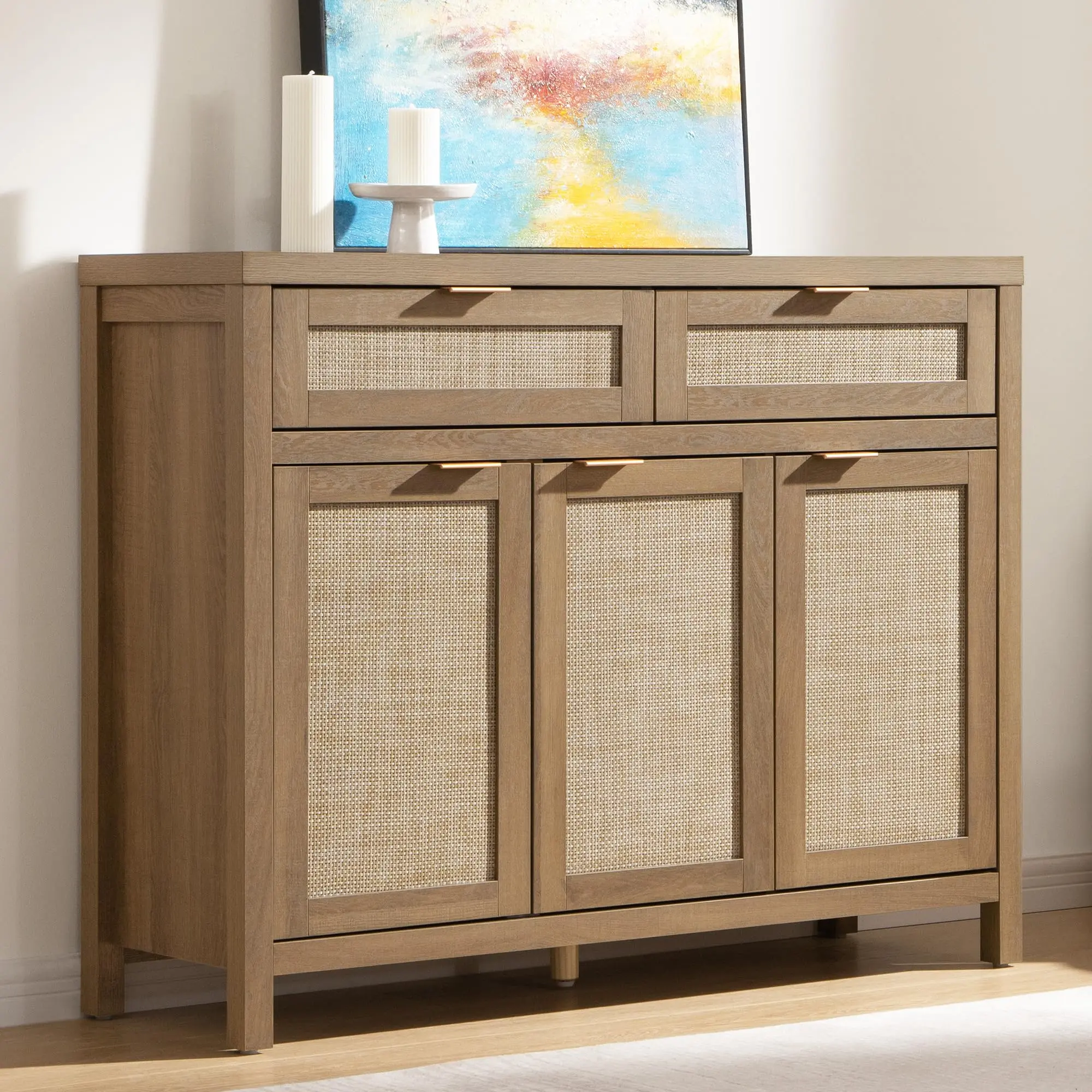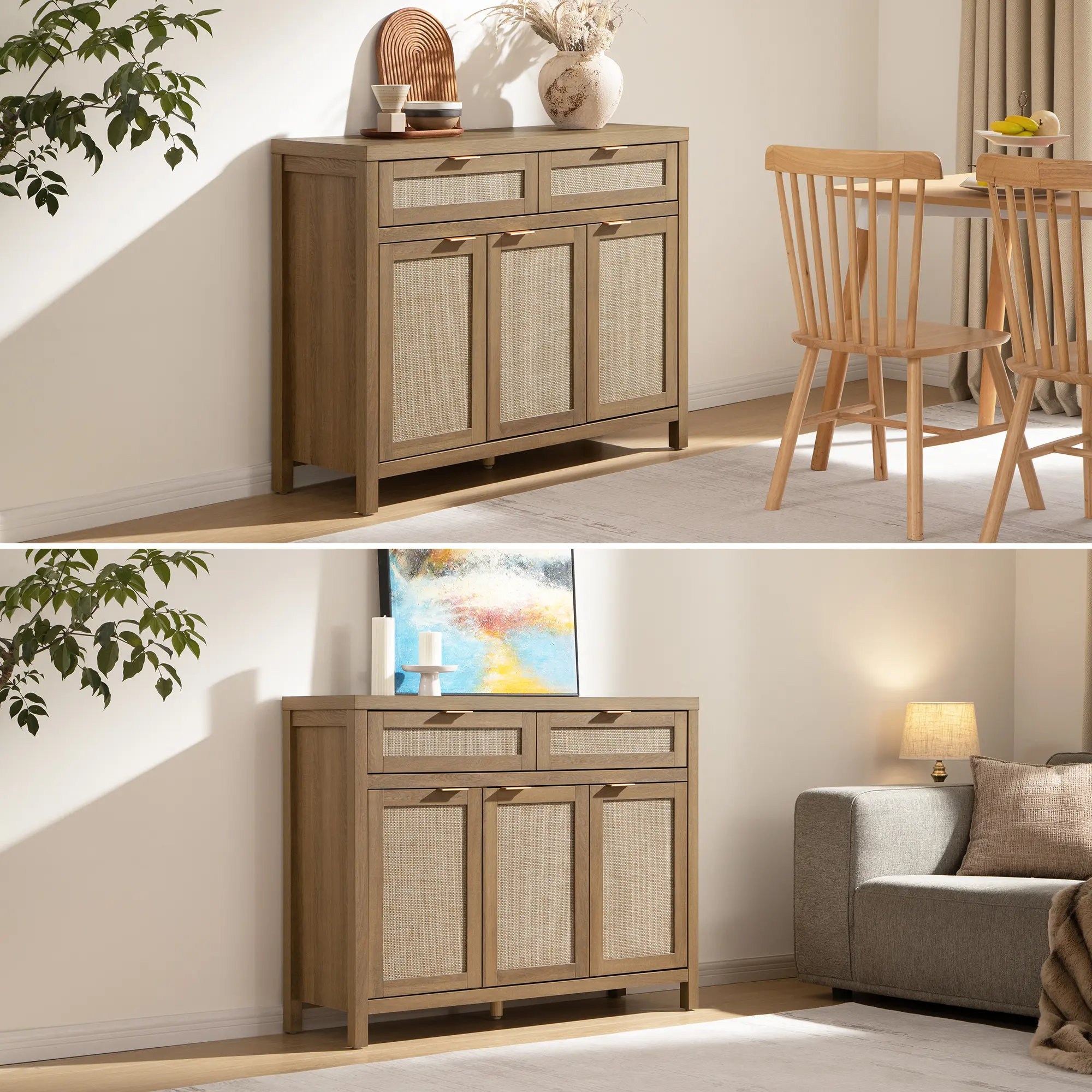 ·【Boho-Inspired Sideboard】: This storage cabinet combines classic rattan accents with a wood grain finish, adding a touch of boho and farmhouse charm to your kitchen, living room, dining room, or entryway.