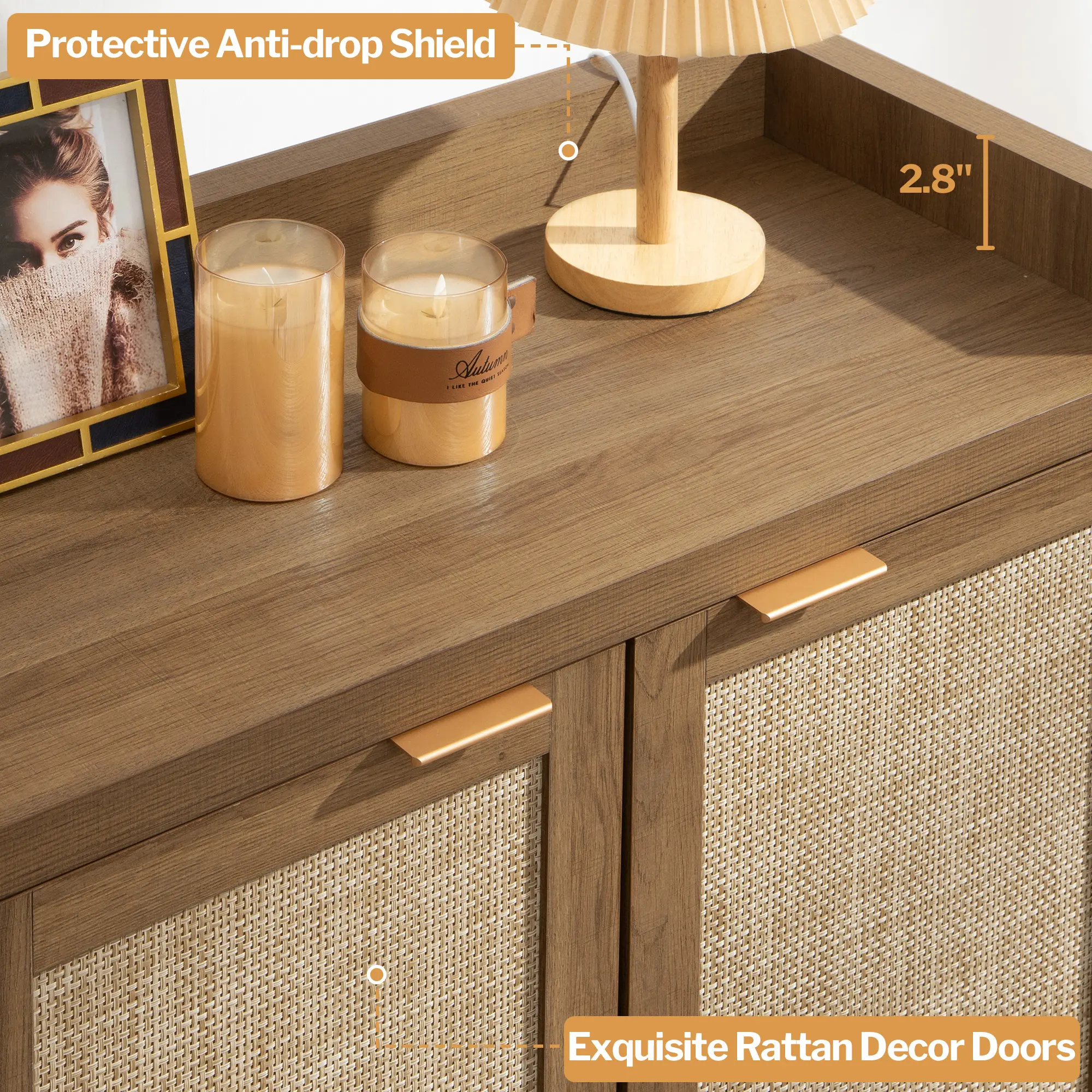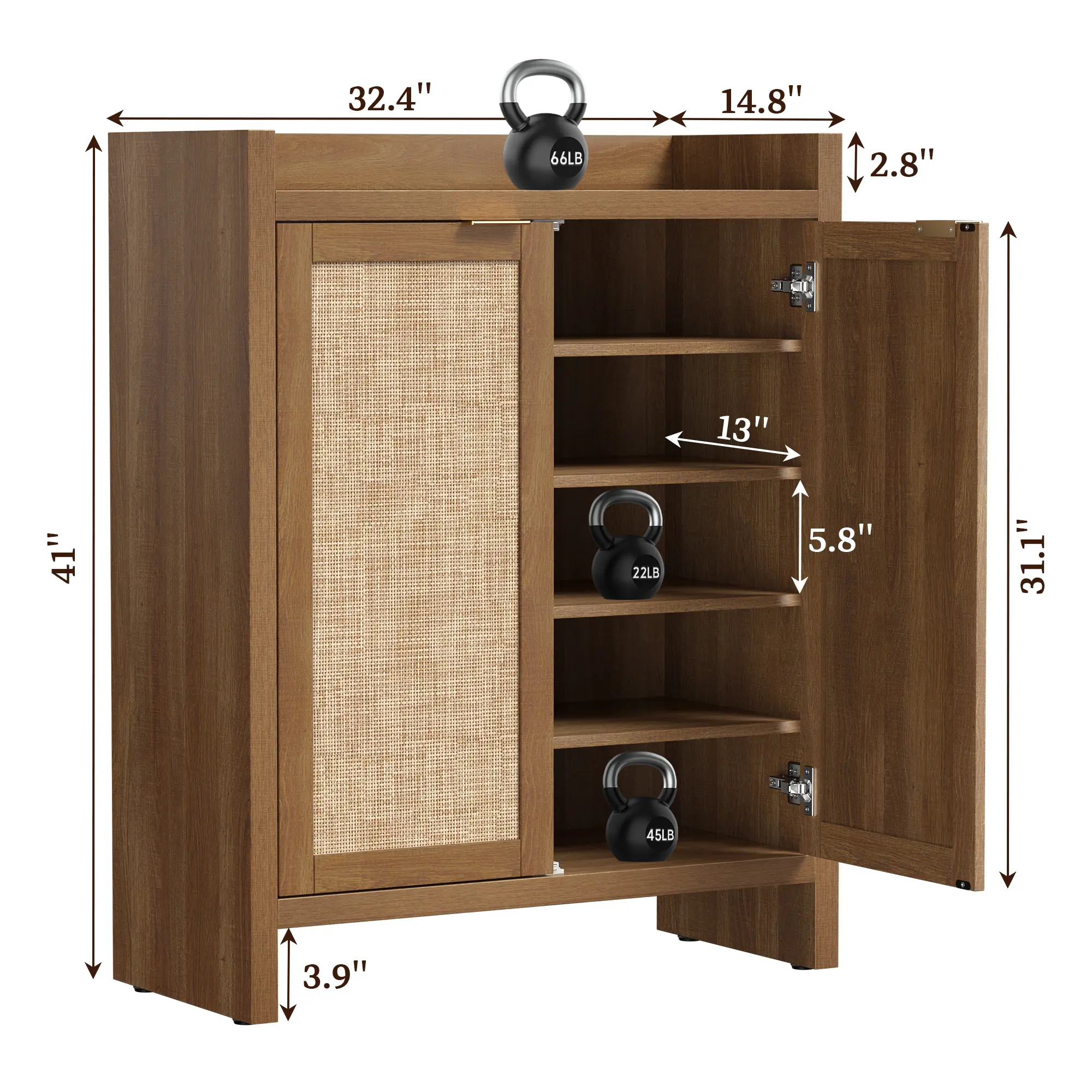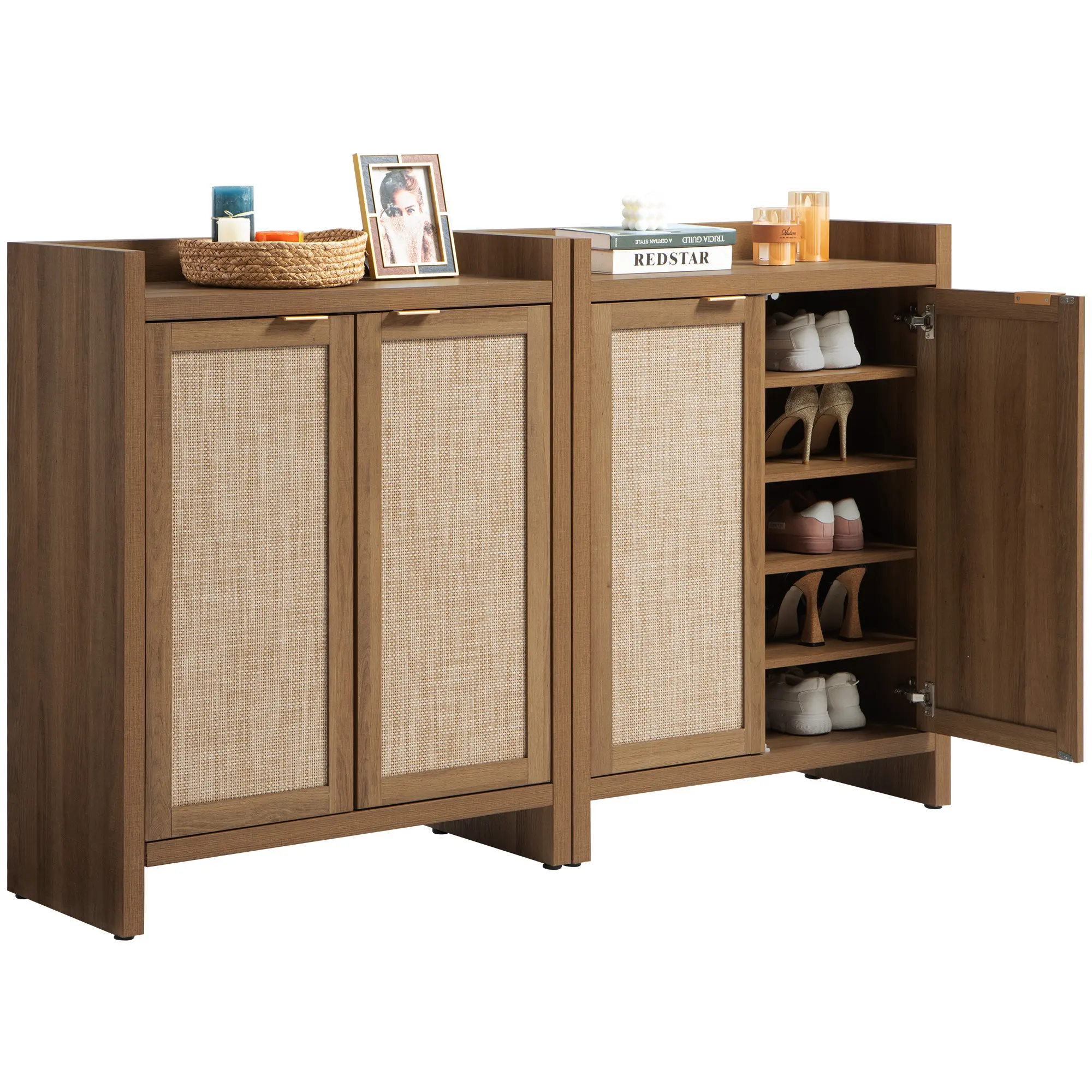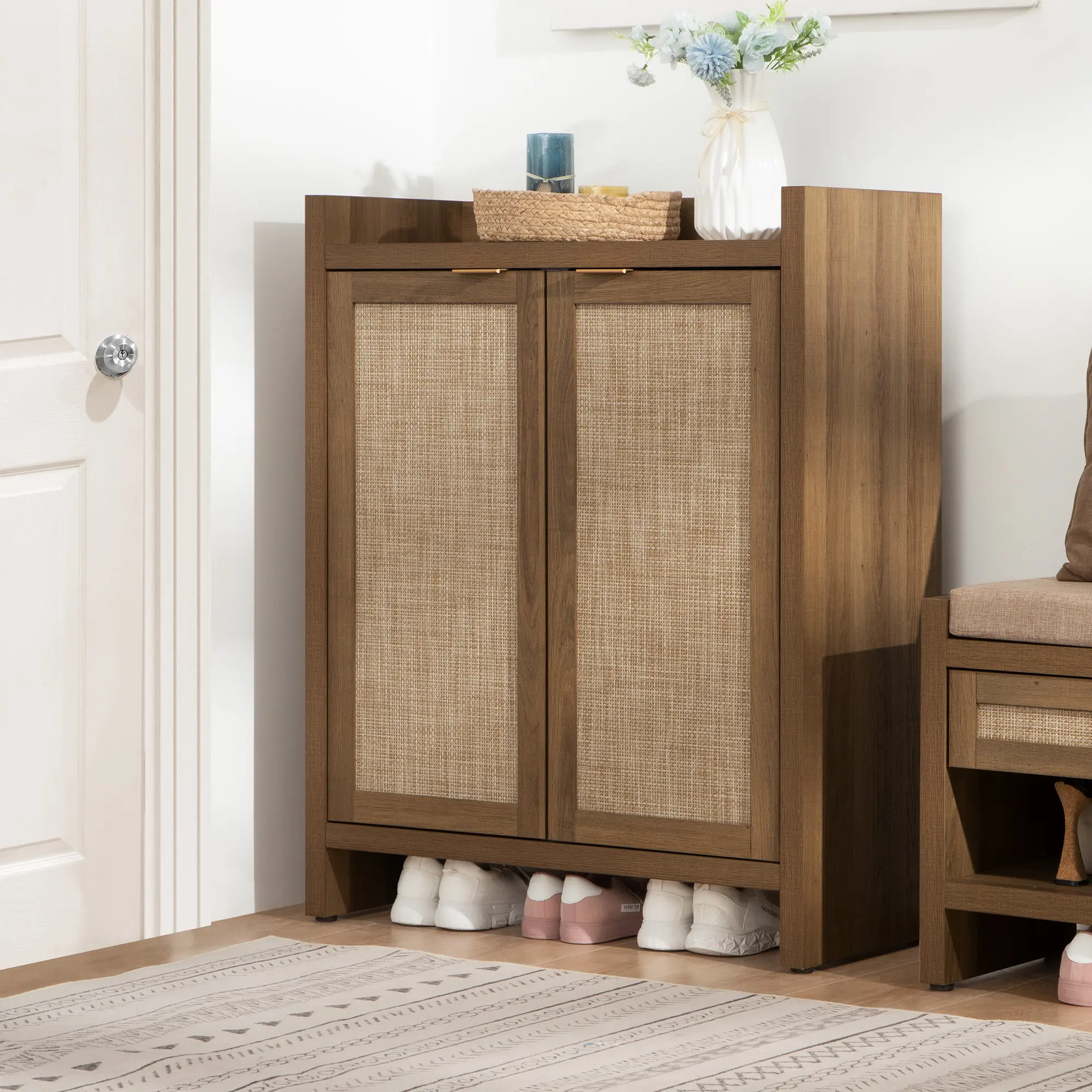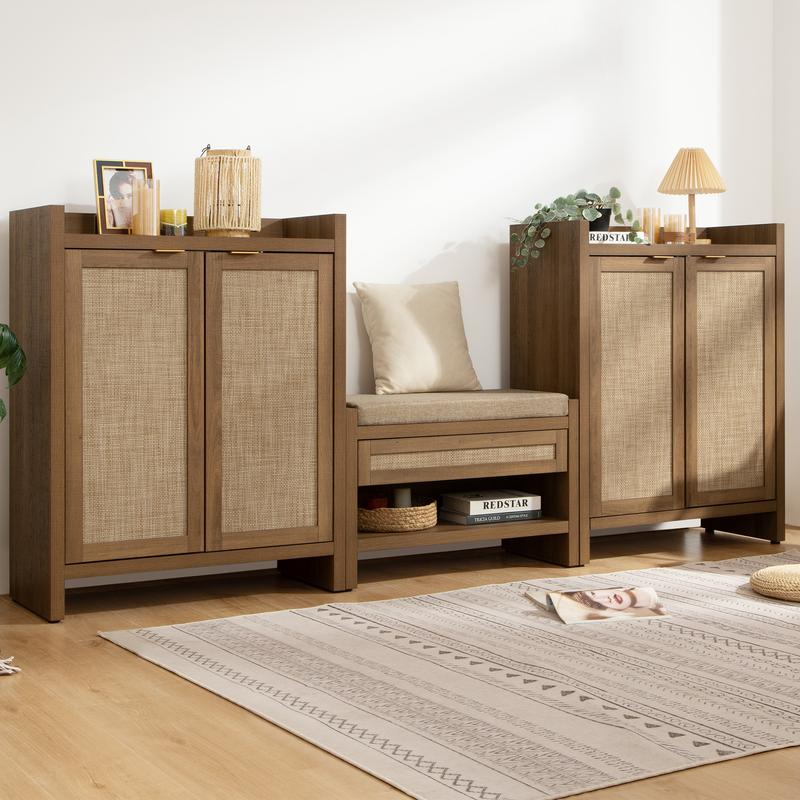·【Everlasting Design】: This shoe cabinet achieves a perfect blend of classic rectangular rattan doors, exuding rustic charm and bohemian vibes, making it a versatile addition to any home decor.