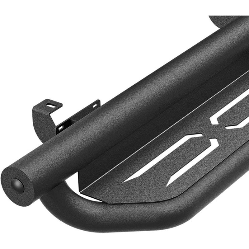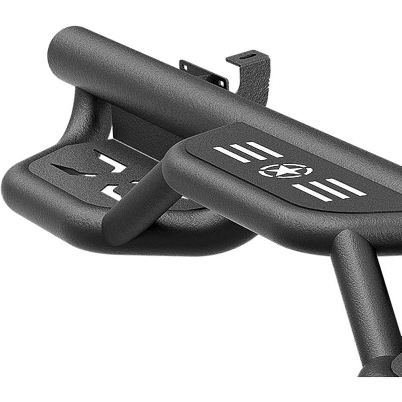 【Functional Design】: ① The side steps boast a two-tier layout, offering improved convenience for vehicles equipped with lift kits and oversized tires, as well as easier access to the roof. ② The ultra-thick main tube provides exceptional weight-bearing capacity, ensuring the step resists deformation and enhances vehicle protection. ③ The hollow design of the step area ensures safe and stable footing, prevents water accumulation, and reduces driving resistance.
