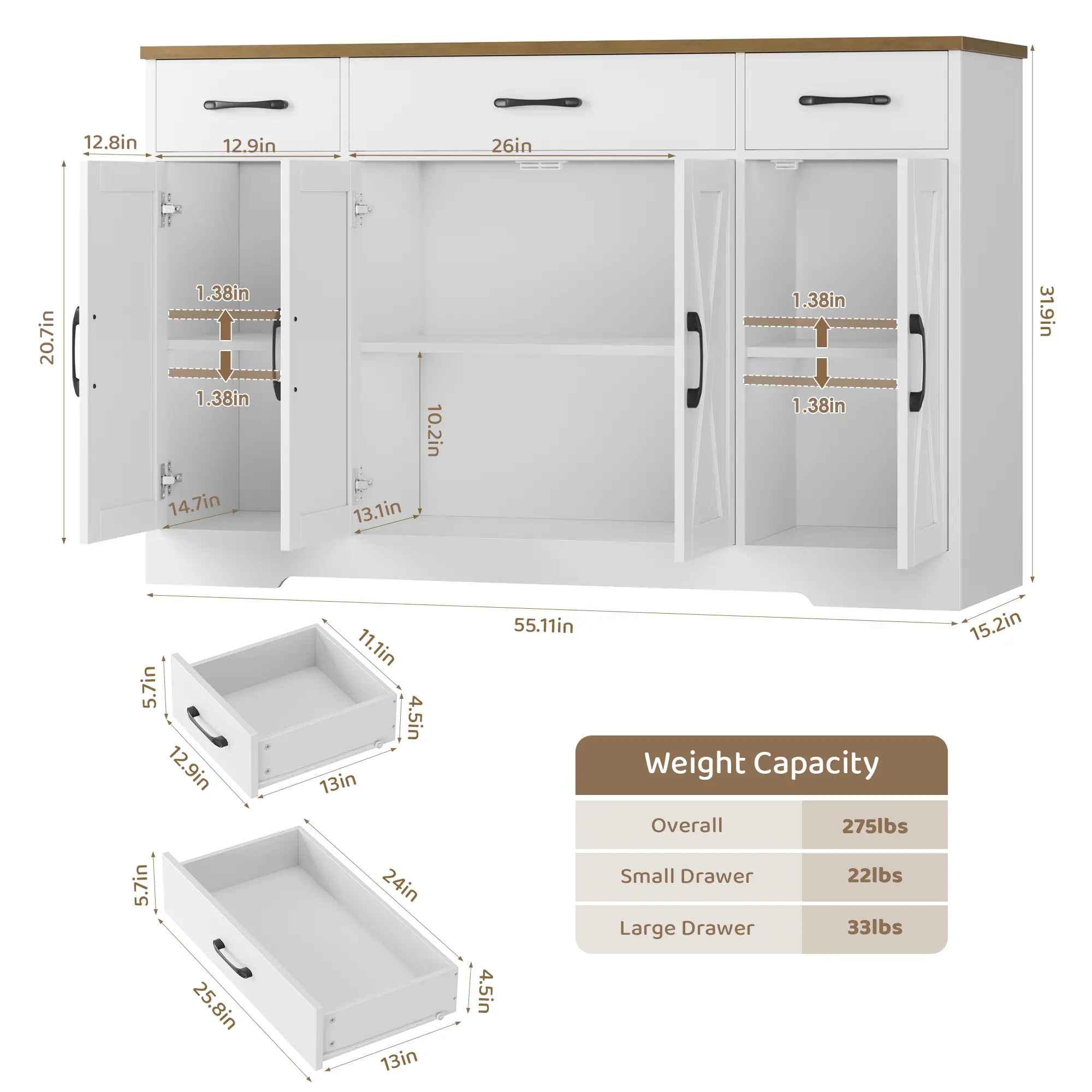 Ā·Overall size: 15.1"D x 55"W x 31.9"H.
