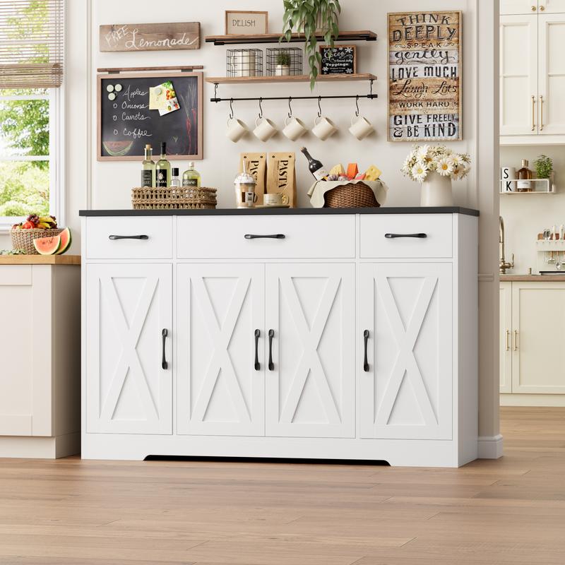 ·Four doors cabinets with one fixed shelf and two adjustable side shelves.