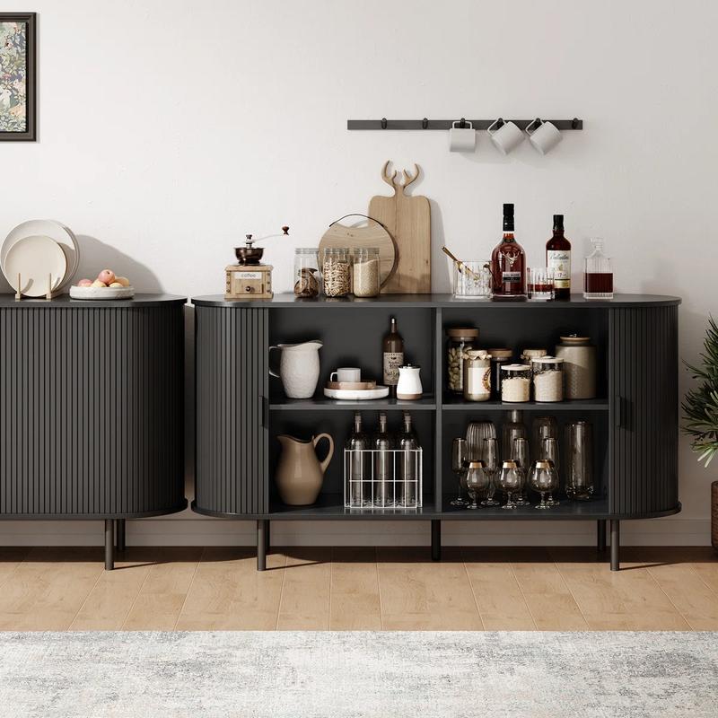 ·SPECIALLY DESIGNED: This Sideboard Buffet Cabinet is specially designed with curved edges making it a perfect accent sideboard. The standard sliding groove track for sliding doors provides effortless gliding. This special and innovative storage cabinet is designed to be compact and provide enough storage.