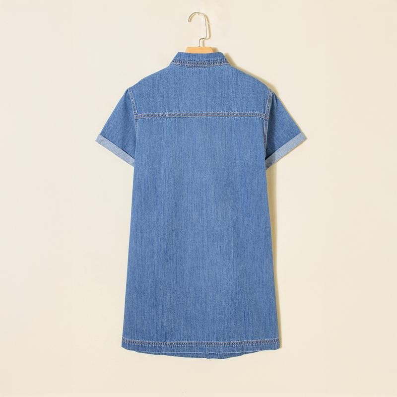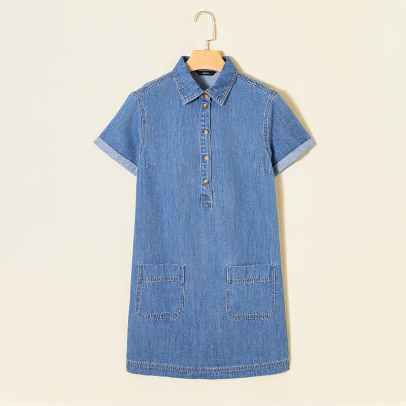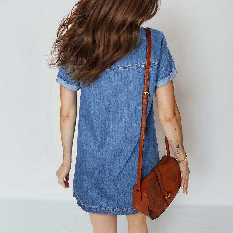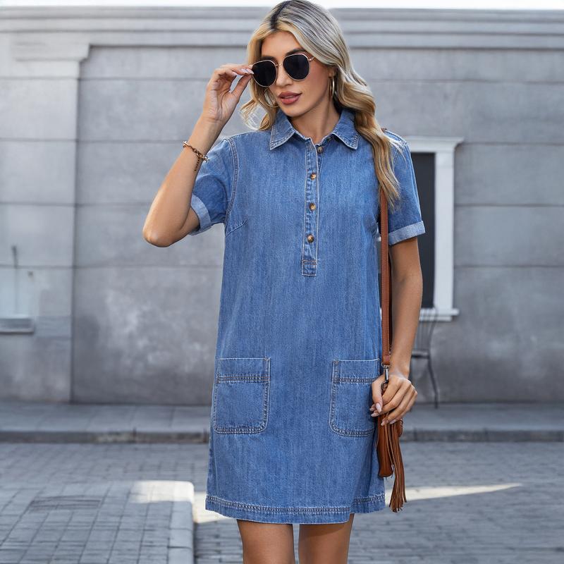 Match:This versatile denim dress pairs seamlessly with flat leather shoes for a leisure look, or low-heeled sandals for a refined touch; layer it with a lightweight blazer in cooler weather, fitting the elegant and understated dressing style of middle-aged women.