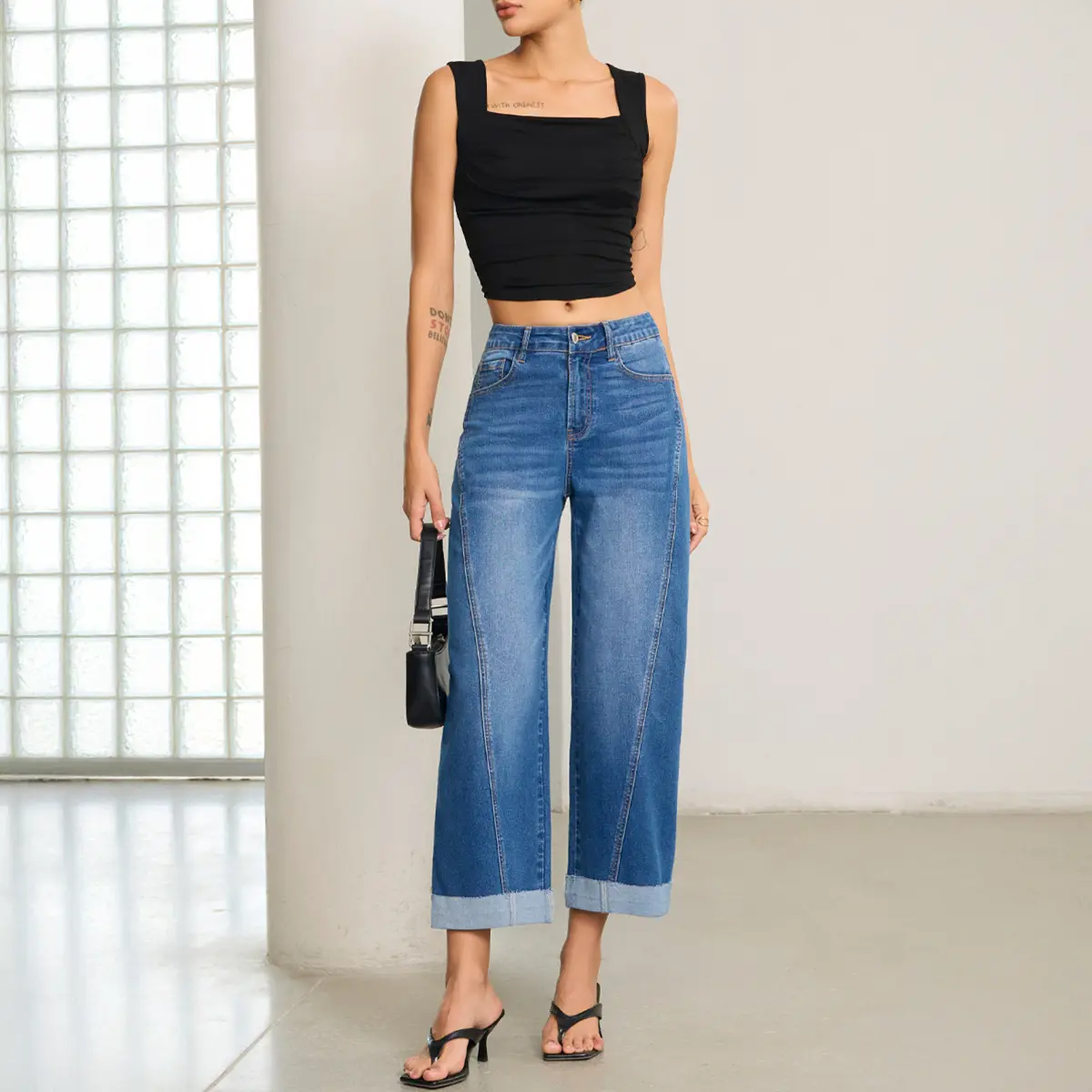 Match: This relaxed wide-leg style pairs perfectly with crop tops, fitted long-sleeves, or casual tees; complete the look with heels, sandals, or sneakers to switch between polished and laid-back vibes