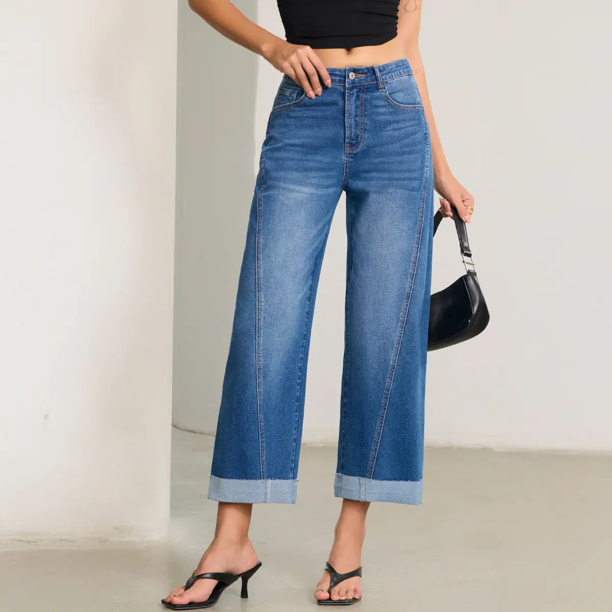 Featured: Sidefeel womens cropped jeans feature a high-waisted wide-leg cut, paired with eye-catching contrast stitching and rolled cuffs that add a casual, trendy touch. The slant front pockets offer both style and practicality, fitting the relaxed-chic aesthetic