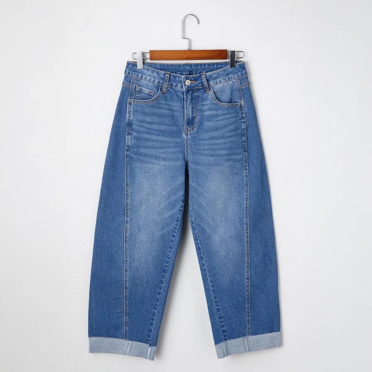 Material: Crafted from soft, breathable light-wash denim (blended with stretch fibers), these jeans deliver a comfortable, flexible fit while maintaining shape. The smooth fabric feels gentle against the skin, ideal for all-day wear