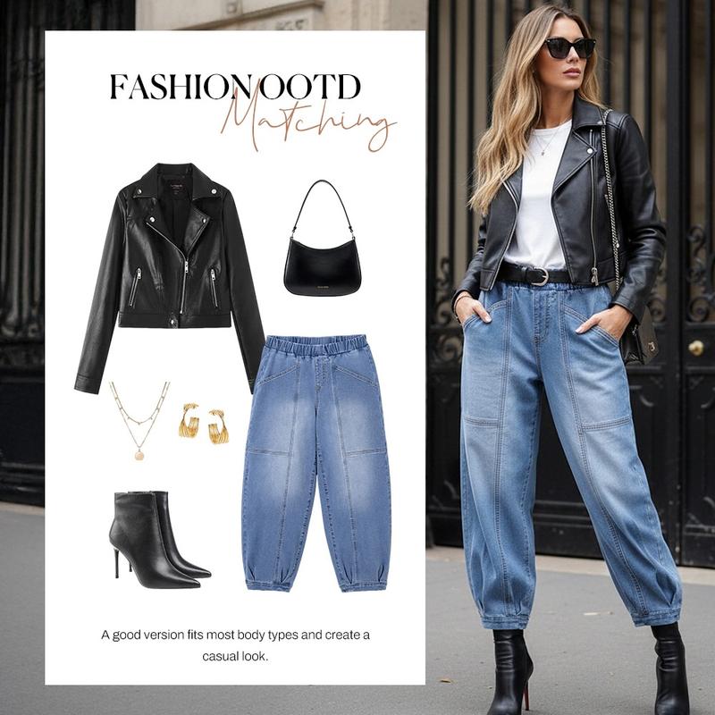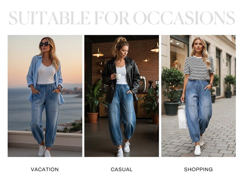 ·Features: Wide leg barrel jeans for women have a sense of personality and fashionable, with high waisted, elastic band waistband, the ankle denim Harem pants, create a casual look for women