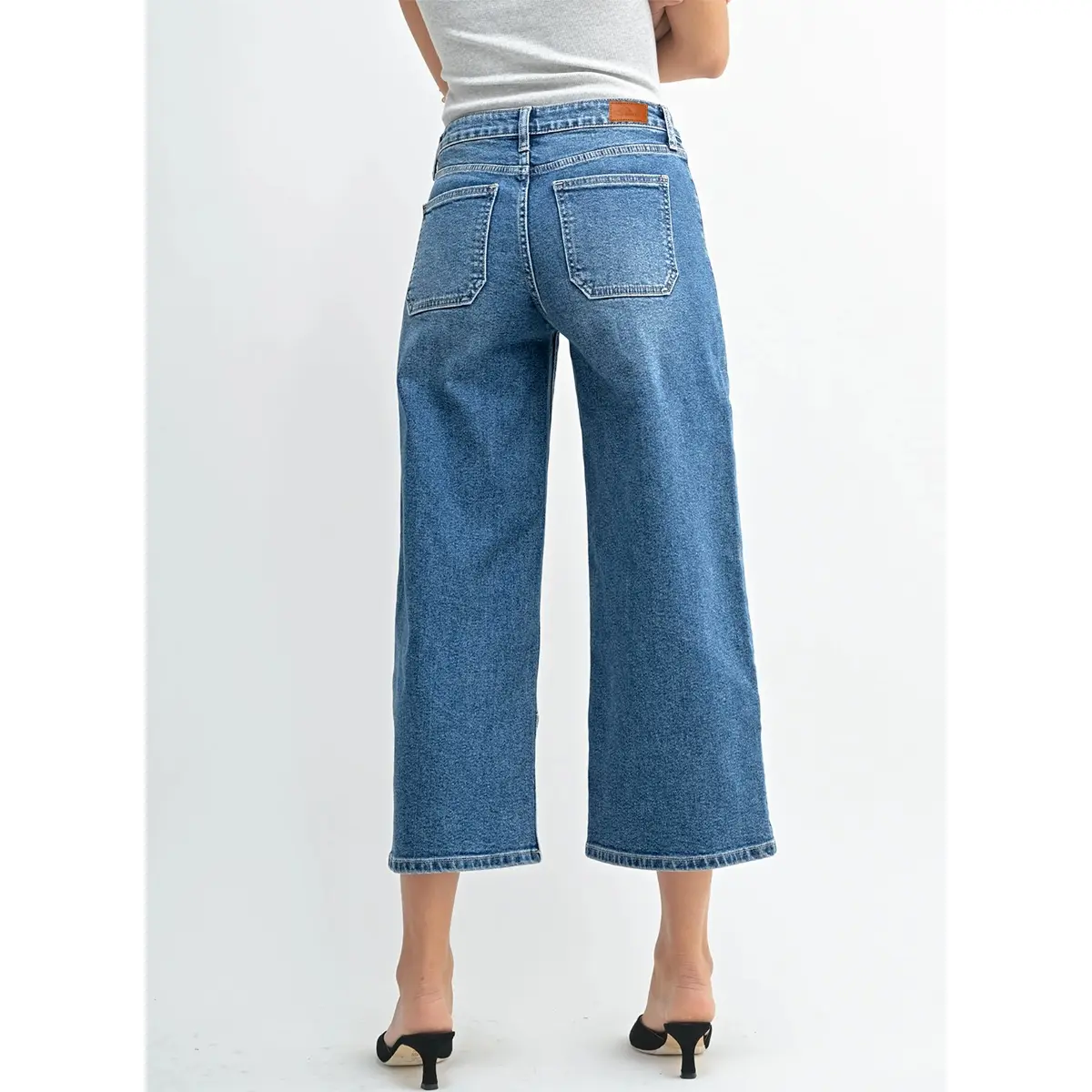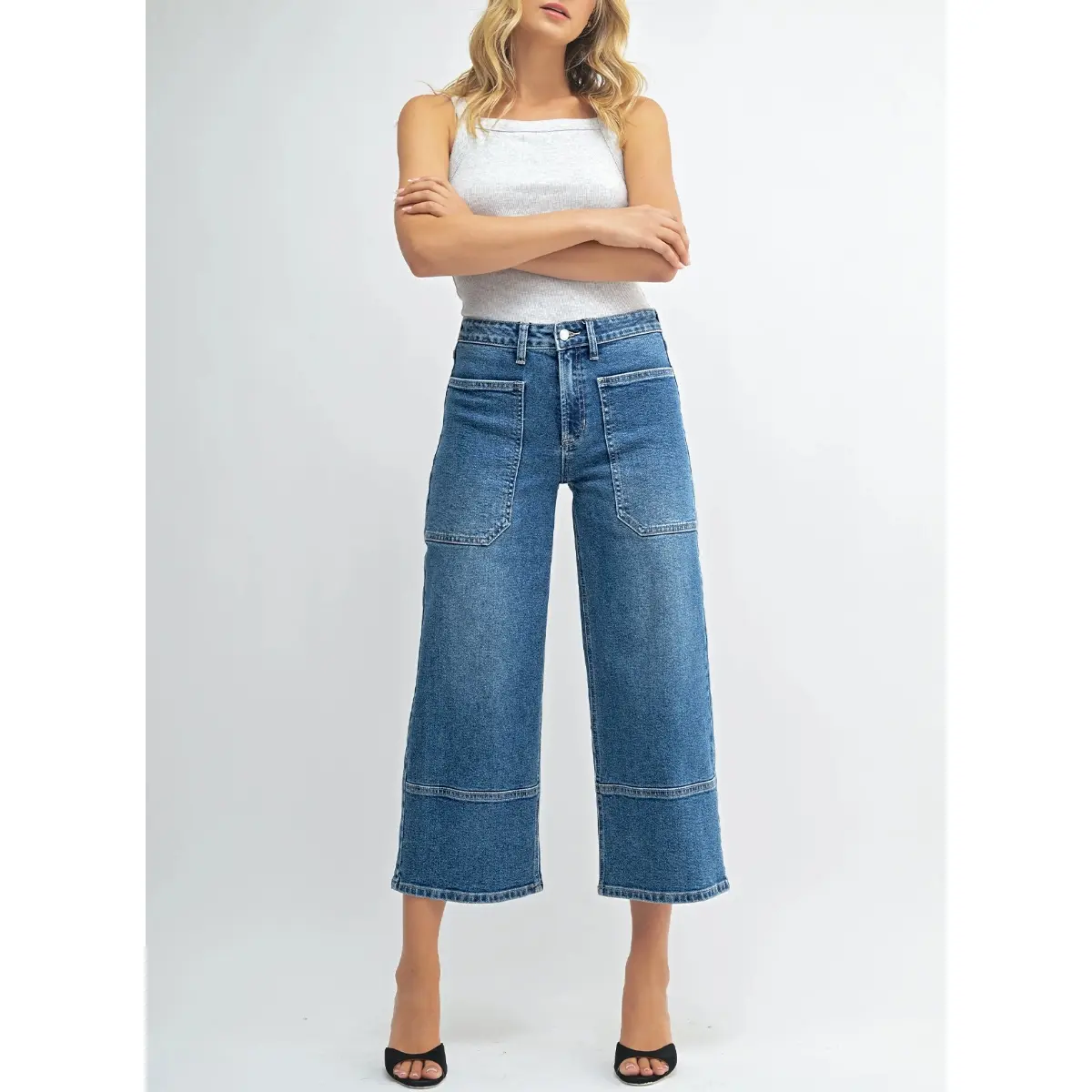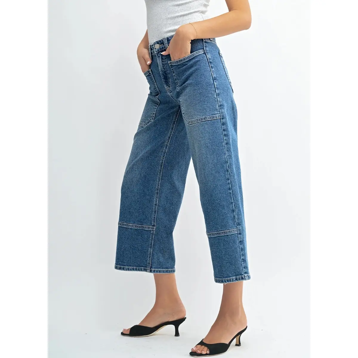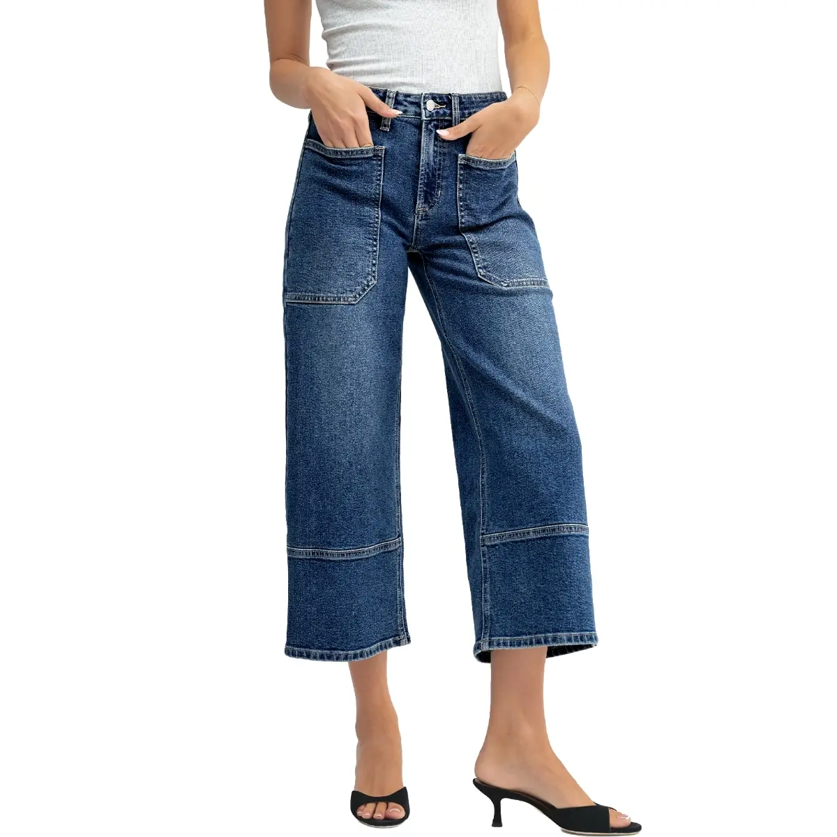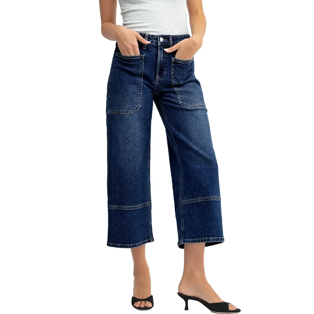 Style: Combining a high-waisted design, wide-leg cut, and functional patch pockets, these jeans embody a modern, casual-chic aesthetic. They’re a trendy yet practical choice that elevates any outfit with a touch of contemporary style.