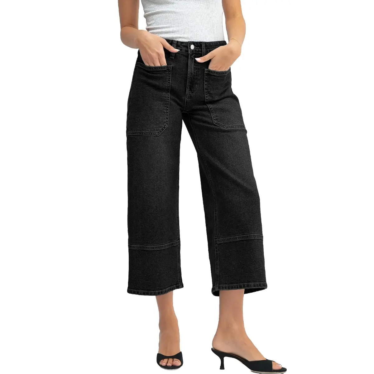 Featured: Sidefeel women's high-waisted wide-leg cropped jeans are designed with oversized patch pockets for a trendy, utilitarian look. The wide-leg cut and cropped length create a relaxed, loose silhouette that’s both comfortable and fashion-forward, making them a standout choice for those who prioritize style and ease.