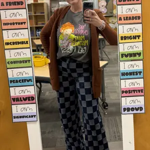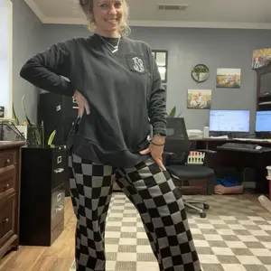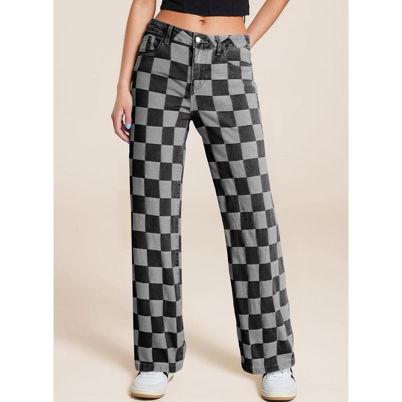 These are one of my absolute favorite pairs of jeans. These checkerboard print is so stylish, the comfort and stretch is amazing and they are short girl friendly!