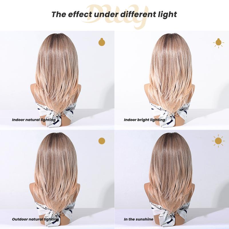 Make a bold statement with the Siena-DWY Wig. It features a trendy light pink shade with natural dark roots, blending playfulness with everyday wearability. This shoulder-length style, 16 inches, adds a vibrant touch while staying manageable. Perfect for women seeking a stylish yet practical wig.