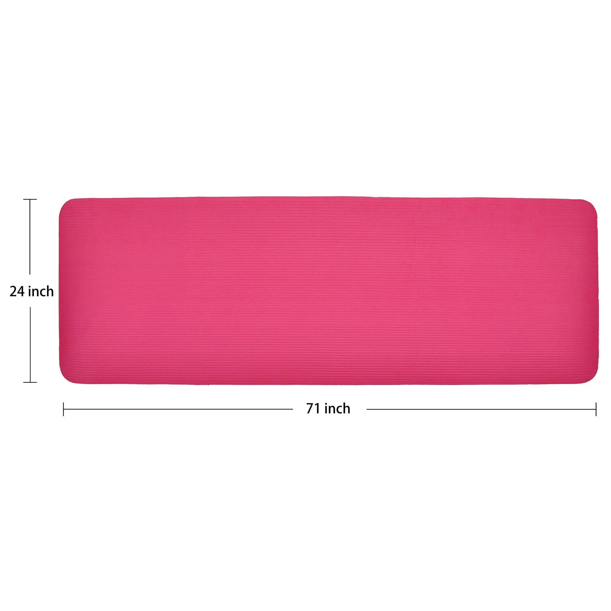 Exercise mat measures 71inches long and 24 inches wide, suitable for people of all shapes and sizes