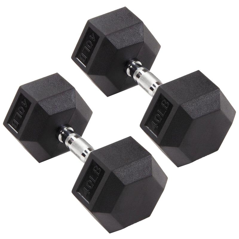 Includes (2) 40-pound dumbbells that are ideal for indoor and outdoor use to help achieve fitness goals