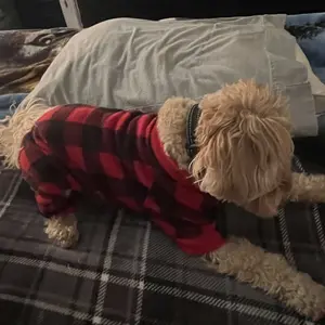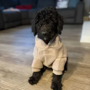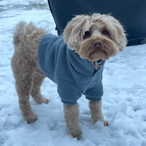 I can't say enough good about this hoodie!! (I've bought so much for me & my daughter's, now I need 5 more for my dogs!!) This is the smallest of the doodles so it's a little baggie on her, but it fits the bigger dogs perfectly. Run don't walk, you need this!! (Definitely going into my showcase)