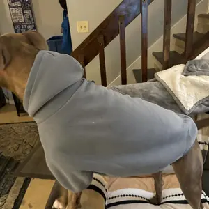 I love the material of the hoodie I just wish I got it bigger my dog is 60-ish pounds. So the only down fall it’s a little tight on him and I got a XL I will be ordering another one. I will probably try an 2XL but he absolutely loves it for the most part 🤎