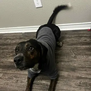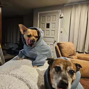 I am loving these hoodies from comfort!!! They are thick, soft, and easy to put on and off of my 61 lbs. Staffordshire American Pitbull Terrier, Rosie Dream. She is actually a 4X, but I have been buying both 4X and 5X. I'm saving the 5X because I believe she'll be in them by next winter.