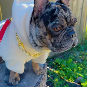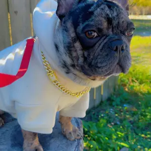 My dog is obsessed with this hoodie! For reference I got a 4X and my pitty is about 70lbs. The hoodie is a tiny bit small but that’s really not an issue. I did message on ticktock and waiting for a response, on my matching adult set letters fell off on 1st wash and I followed wash instru so sad.