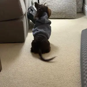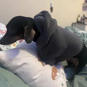 My bigger dog absolutely loves her hoodie!