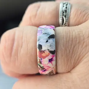 Its a really cute ring. The colors are soft and vivid. The sweet little cow faces are adorable. I'm interested to see how it wears over time. Right now it feels light and fits perfectly