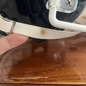 Helmet missing left side padding for inside. Straps on sides dirty. Overall appears to be preowned. Definitely affects resale value.