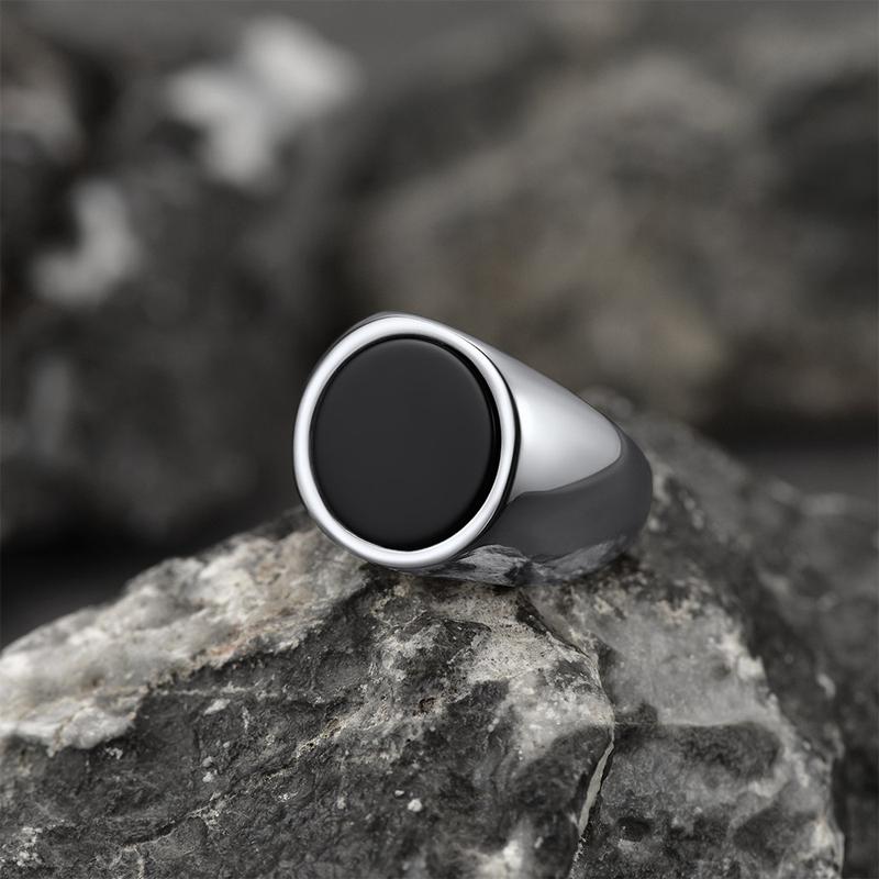 ·Based on folklore, black onyx rings increased vigor, strength, stamina, and self-control. Faithheart black agate band ring for men, made of stainless steel, inlaid black onyx gemstone.