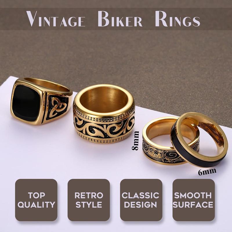 Jstyle 4Pcs Stainless Steel Vintage Signet Rings for Men Pinky Thumb Biker Rings Set