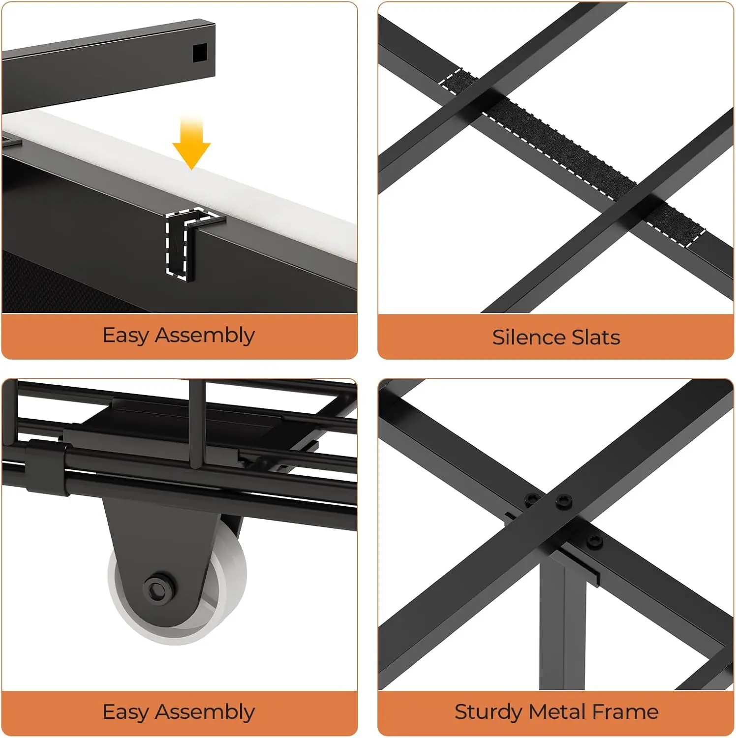 Made of solid steel and quality solid wooden slats with no-slip pad of bed legs ensuring durability and stability. Easily loading 700 lbs. No-nosie design give you quiet sleeping environment.