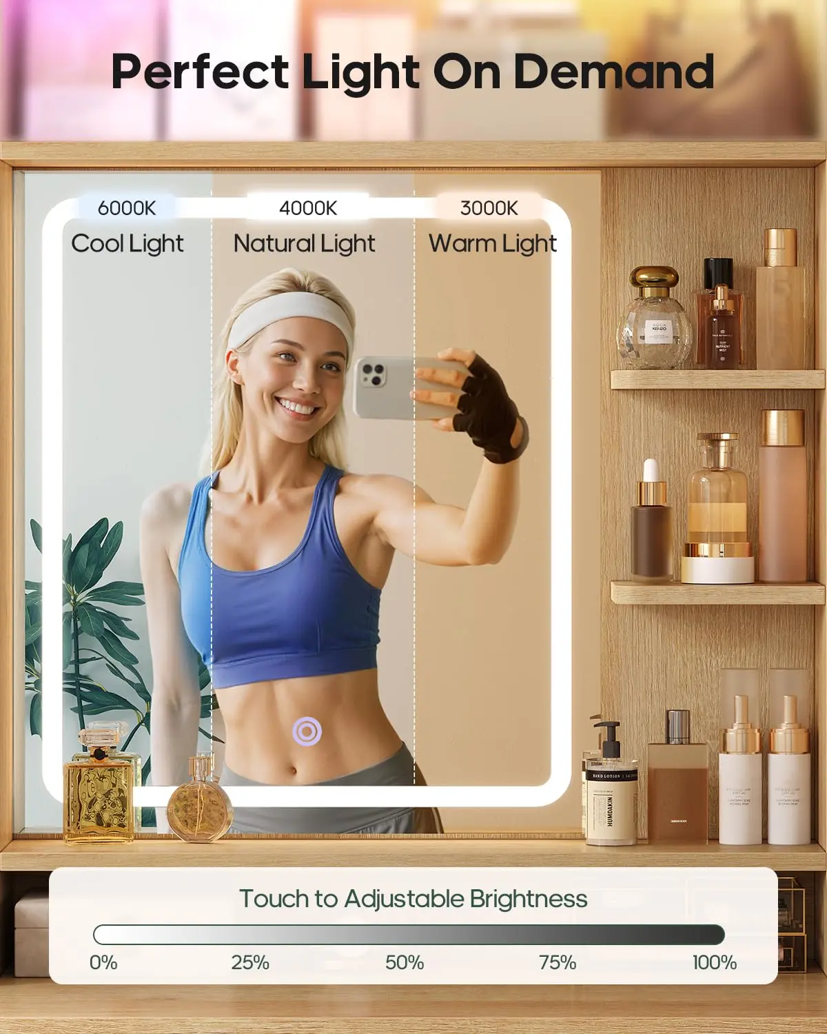 ·Pro-Grade Touch-Control Mirror: The built-in HD mirror features three adjustable color temperatures and customizable brightness, allowing you to switch from cool daylight to warm evening glow with a simple touch. Enjoy flawless makeup application for video calls, special occasions, or nights out, every single time.