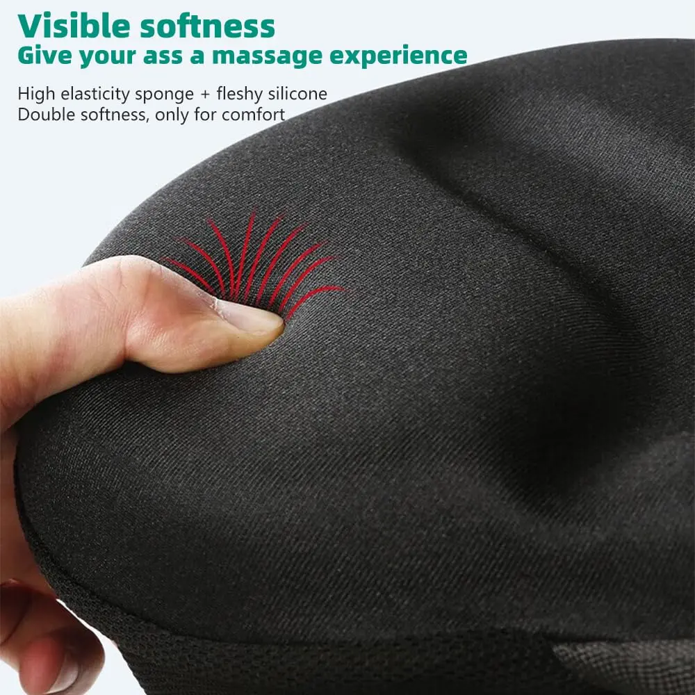 ·The bicycle seat cushion uses a high-elastic sponge and fleshy silicone, which is twice as soft and has a softness visible to the naked eye, giving you a massage experience on your butt.