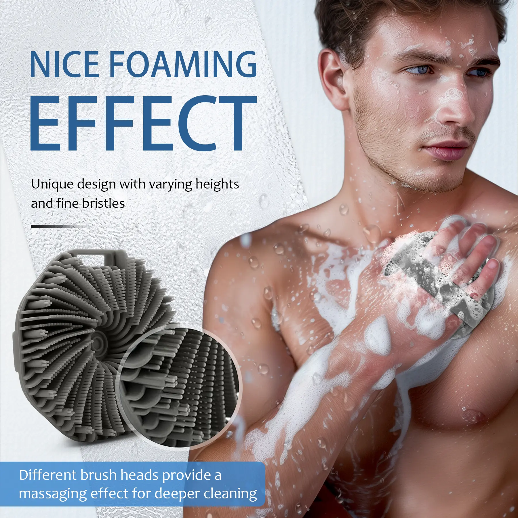 Our silicone shower brush features flexible silicone bristles that help create a rich lather and provide deep cleansing. It effectively meets your exfoliation needs while gently caring for your skin. This brush gently removes dead skin cells, dirt, and excess oil from pores, helping to soften and rejuvenate your skin.