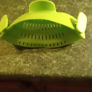 Love this product. Takes up less space than a regular strainer and works on all size pots.