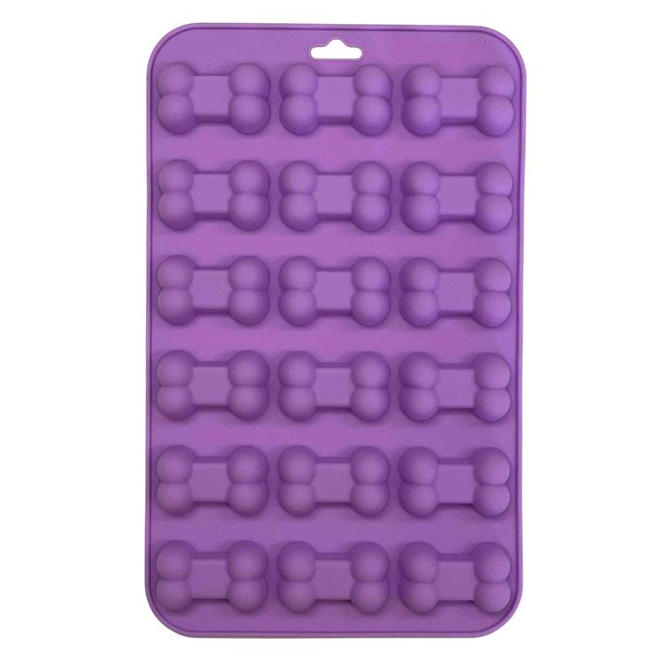 The mold measures 9" x 5.5" x 0.5", weighing 2.2 oz. This size ensures you can make enough treats for your dog. The purple bowl/dish is not just for looks but a practical choice for easy cleanup. Give your dog a tasty, bone-shaped treat that's both fun and practical.