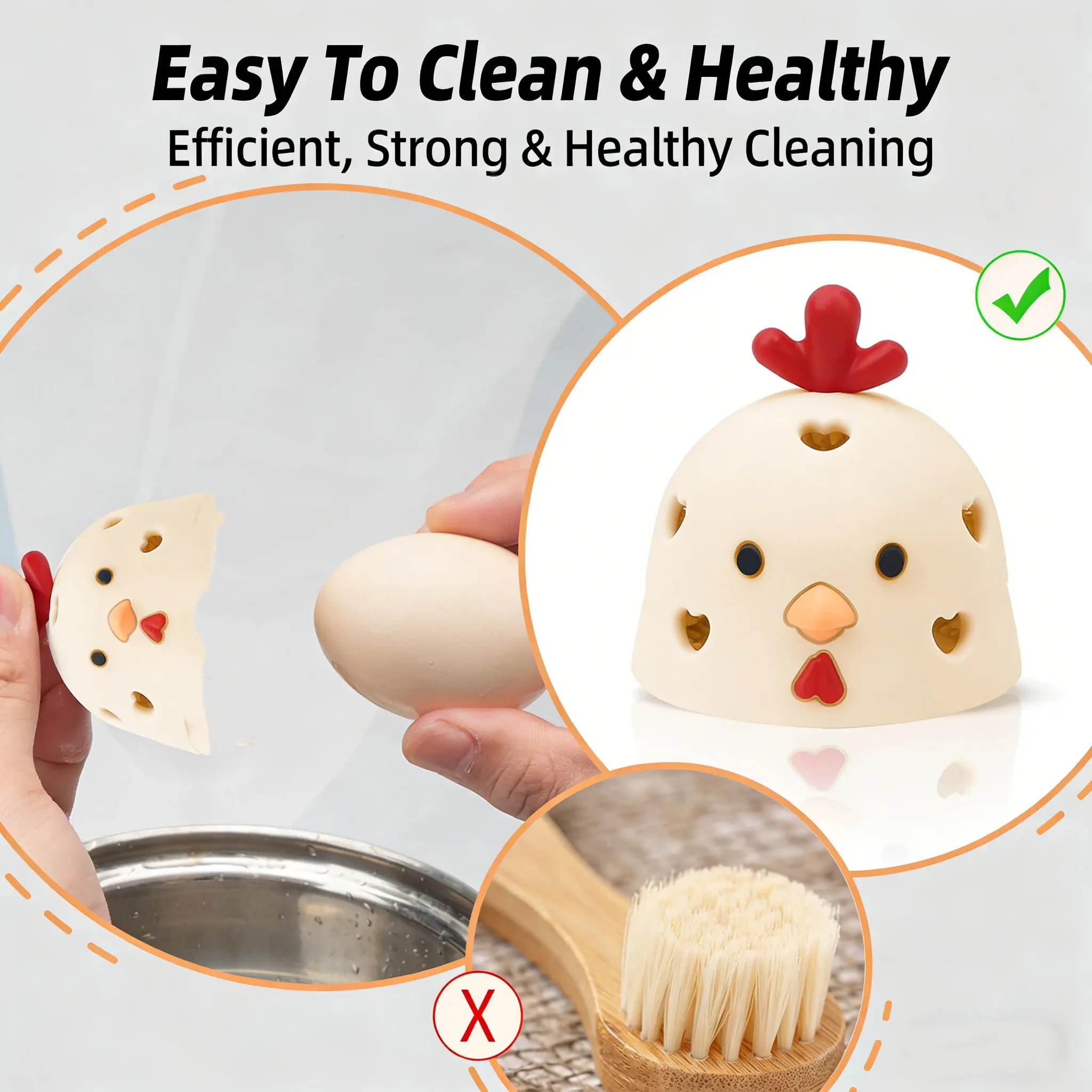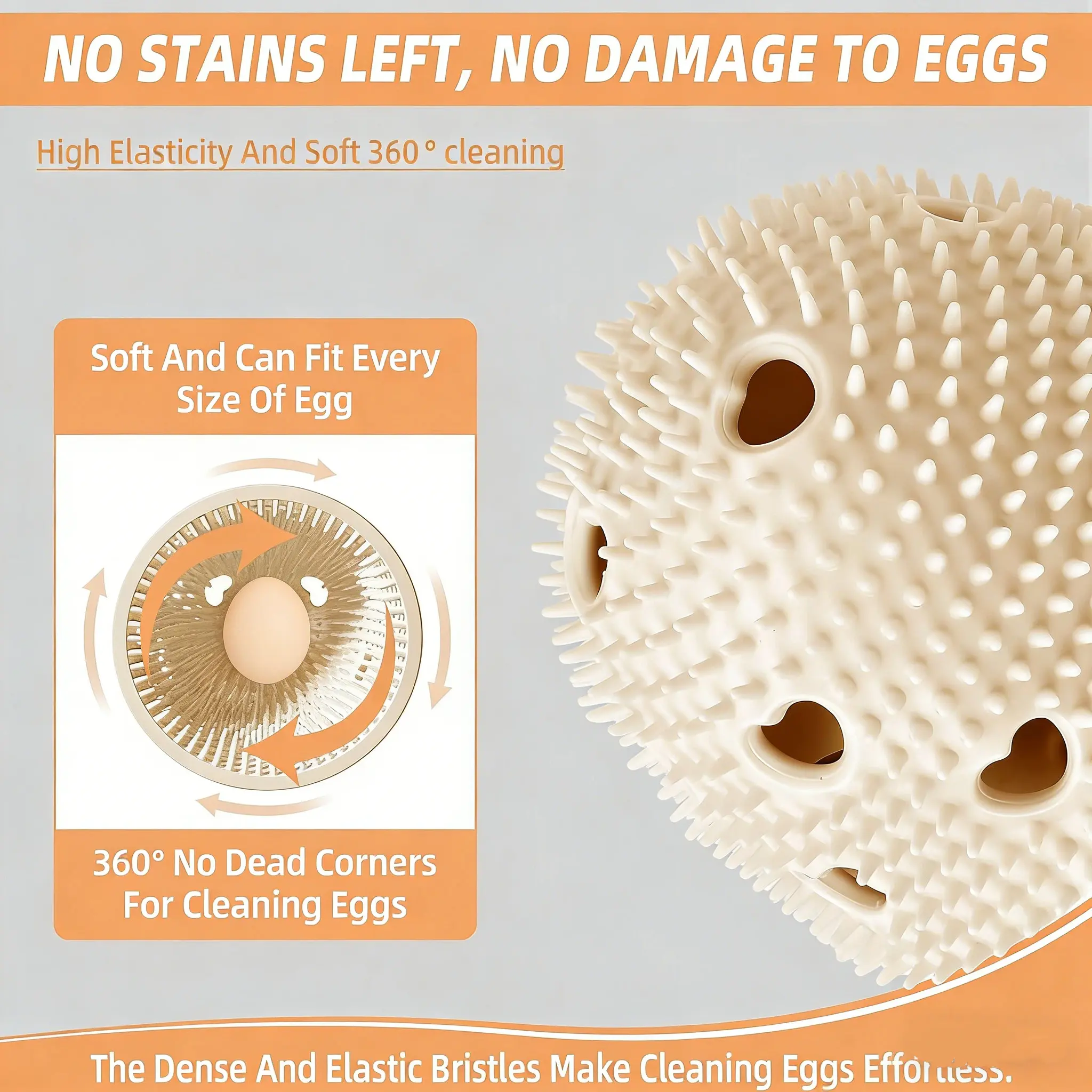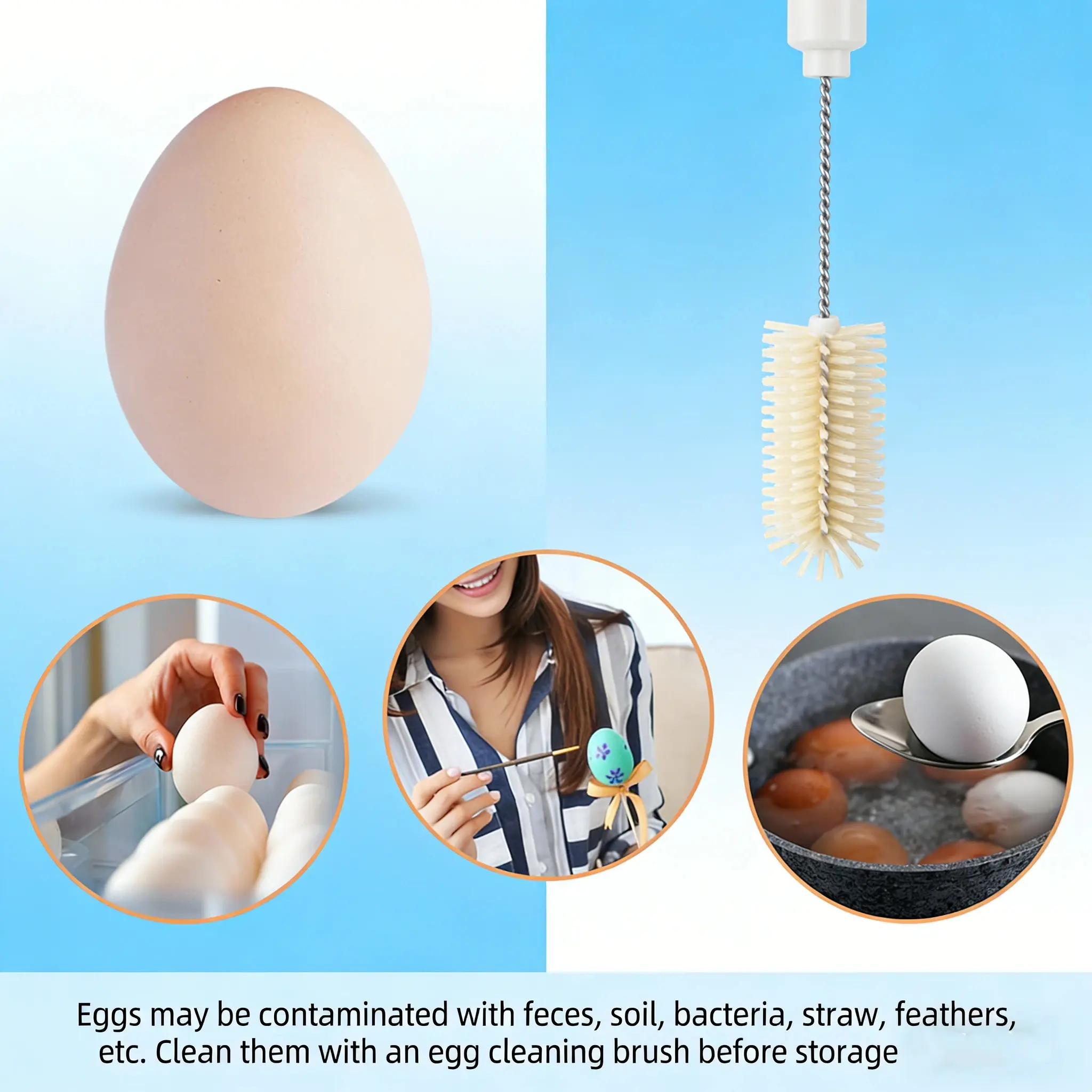 [Unique Egg Cleaner]Ditch the old-fashioned egg scrubbers and upgrade to our modern egg washer tool.Our good egg brush is uniquely designed to match the specific shape of an egg, making optimal contact with every part of the shell for effective cleaning.