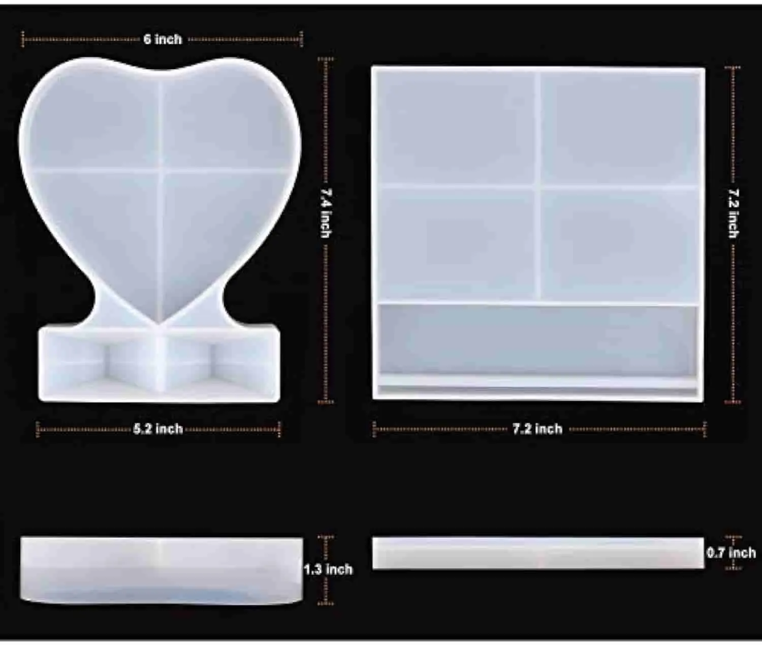 ·Large-Size Photo Frame Molds: The heart shape resin molds is 5.2*7.4 inch, the silicone square molds is 7.2*7.2 inch. Need Approx 8 oz Resin with the heart one. With the large size, the picture frame molds are available with most of the photos.