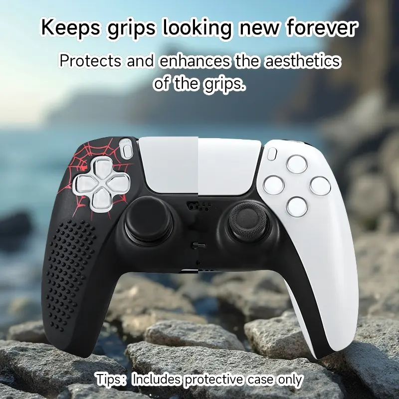 Silicone Game Controller Protective Case, Game Controller Protector with 2 Thumb Grip Cap, Soft Shell, Gaming Accessories for PS5 Controller, Cover