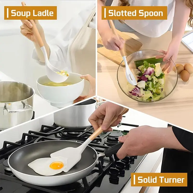 5. Silicone Kitchen Utensils Set, 6 Counts/set Wooden Handle Cooking Utensils Set, Heatproof Kitchen Tools for Non-stick Cookware