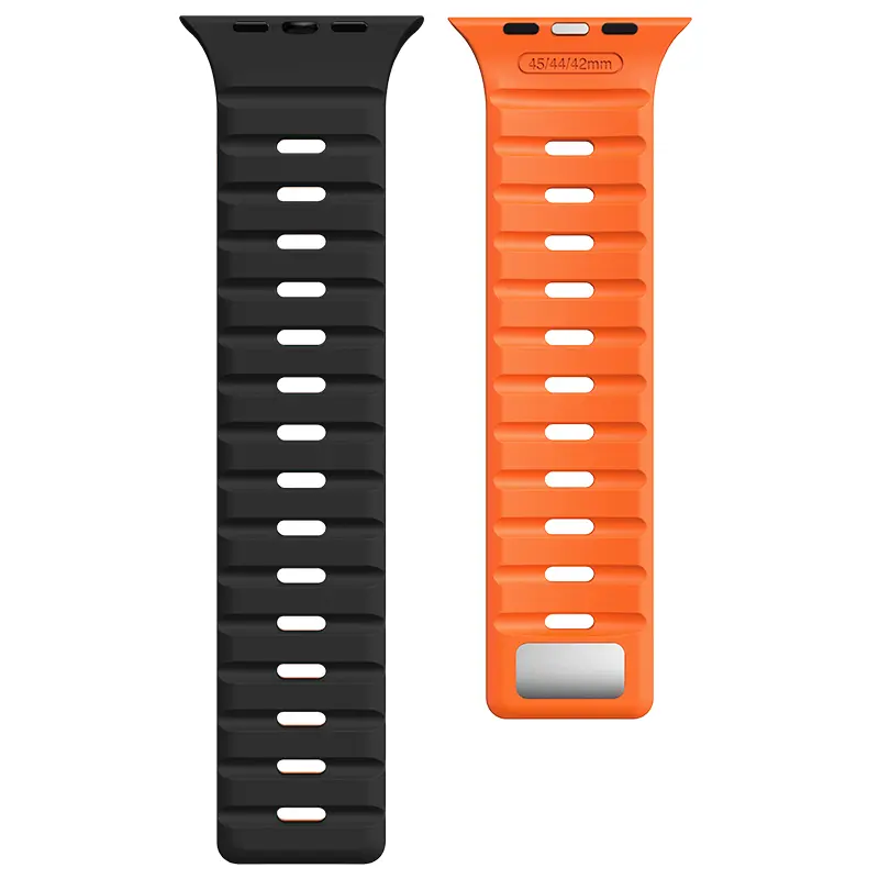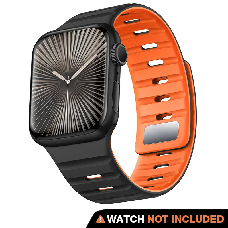 Our silicone magnetic iwatch band provides a secure and stable fit with its powerful magnetic attraction. Featuring a newly introduced metal buckle for dual protection, the enhanced magnetic grip and additional safety loop ensure your iWatch remains firmly in place during all activities, including exercise and wet conditions.
