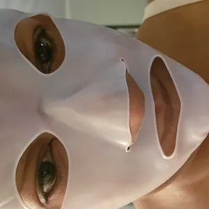This is a thin layer silicone facial mask cover. It has a good amount of stretch to accommodate most face sizes.