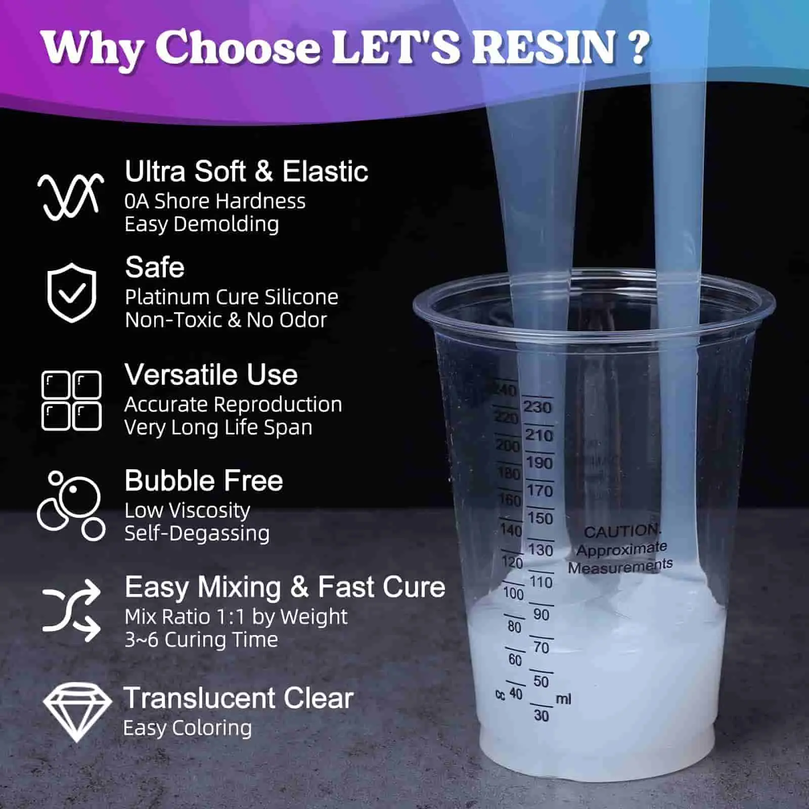 ·【WIDE RANGE OF USE 】: LET'S RESIN high-performance mold making silicone rubber is very ideal for art craft use, easily make your own silicone molds, producing molds for multiple castings of virtually any object you want! You can then use these molds to cast crafts out of materials like epoxy resin, uv resin, candle wax, soaps, and more!