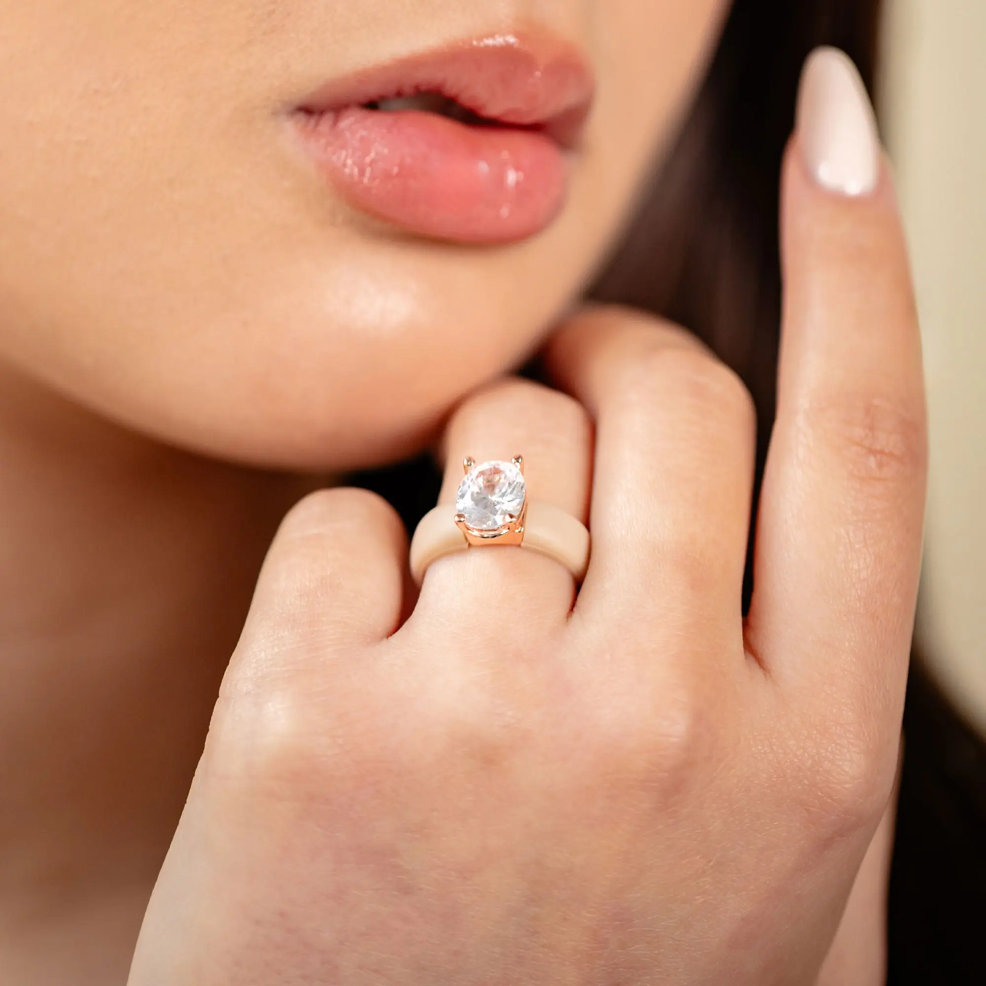 I LOVE THIS RING! It was perfect sizing. The stone is beautiful!!!! I can’t wait to get another one in the nude color.