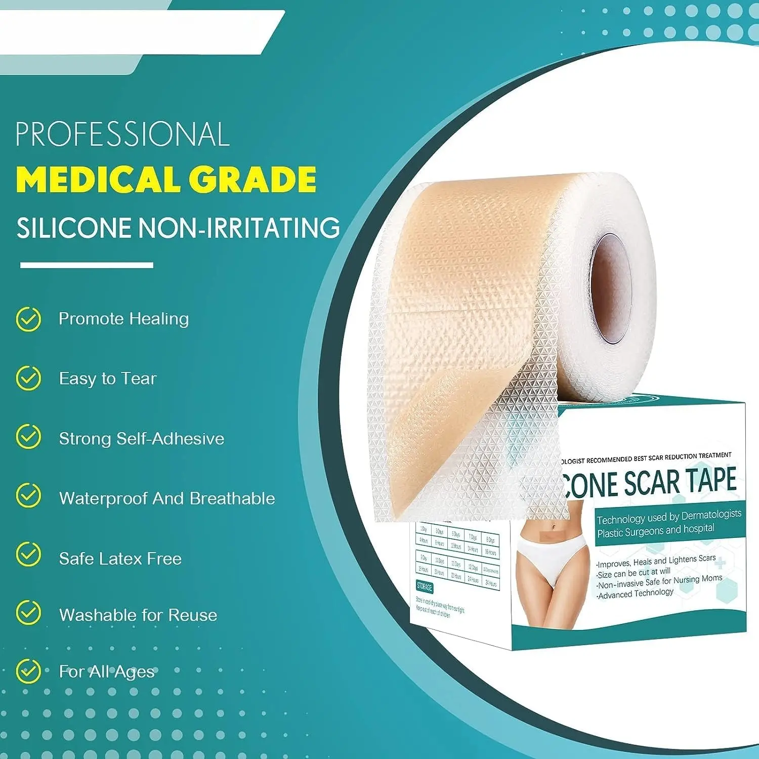 Scar Removal Silicone Tape 3M Roll (1.6 x 120) for Keloids, Surgical Scars C-Section & Burn HealingScar Removal Silicone Tape 3M Roll (1.6 x 120) for Keloids, Surgical Scars C-Section & Burn HealingScar Removal Silicone Tape 3M Roll (1.6 x 120) for Keloids, Surgical Scars C-Section & Burn Healing