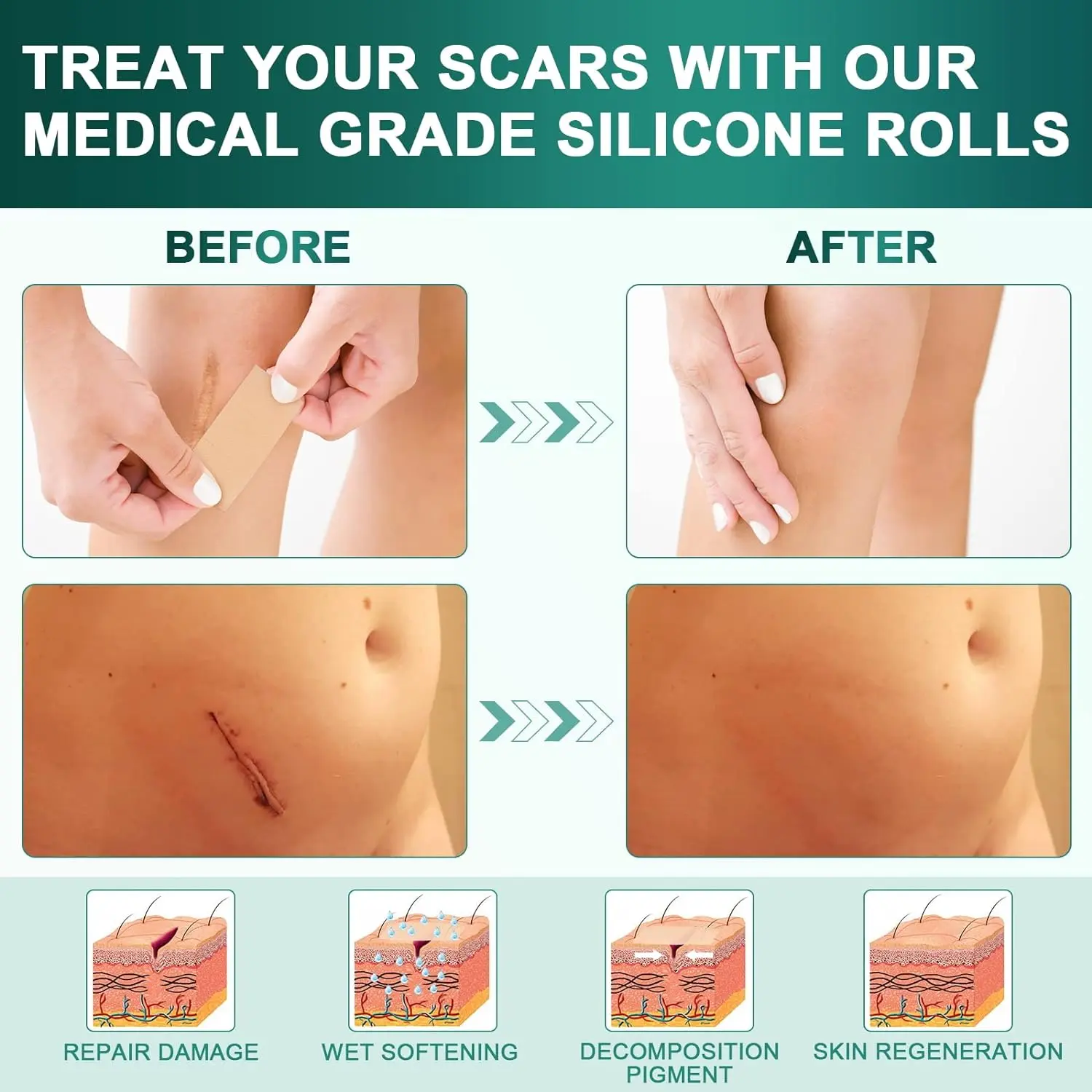 📐 No Pain, All Gain Scar Reduction: Consistent use can soften, flatten, and diminish scars in 4-8 weeks, with results varying by person. They reduce new scar formation while making existing scars smoother and less visible.
