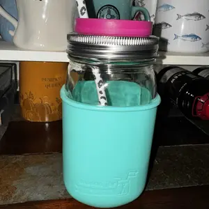 Whether you call it a Koozie, a Kozie, a Coozy, a Cozy, or just an insulating sleeve, it's perfect for protecting your glass jar from breakage and your hand from cold or heat.