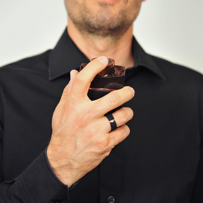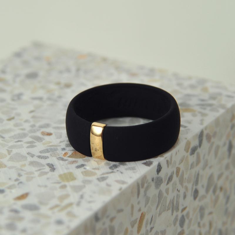 ·For Her: Black silicone ring with a gold stainless steel plate - elegant, lightweight, and comfortable.