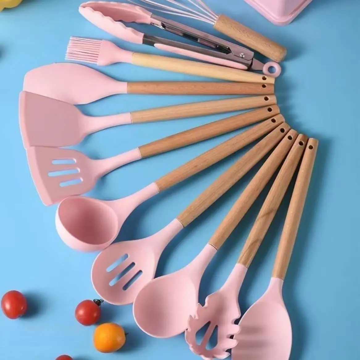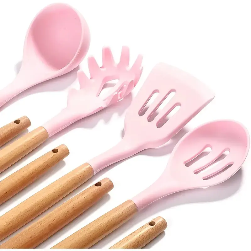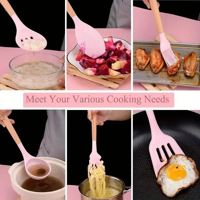 The Little Kitchen Utensils Set is a versatile collection osilicone cooking tools designed with wooden handles,perfect for home cooks who use nonstick cookware. Here'san overview of the 19-piece silicone utensil set: