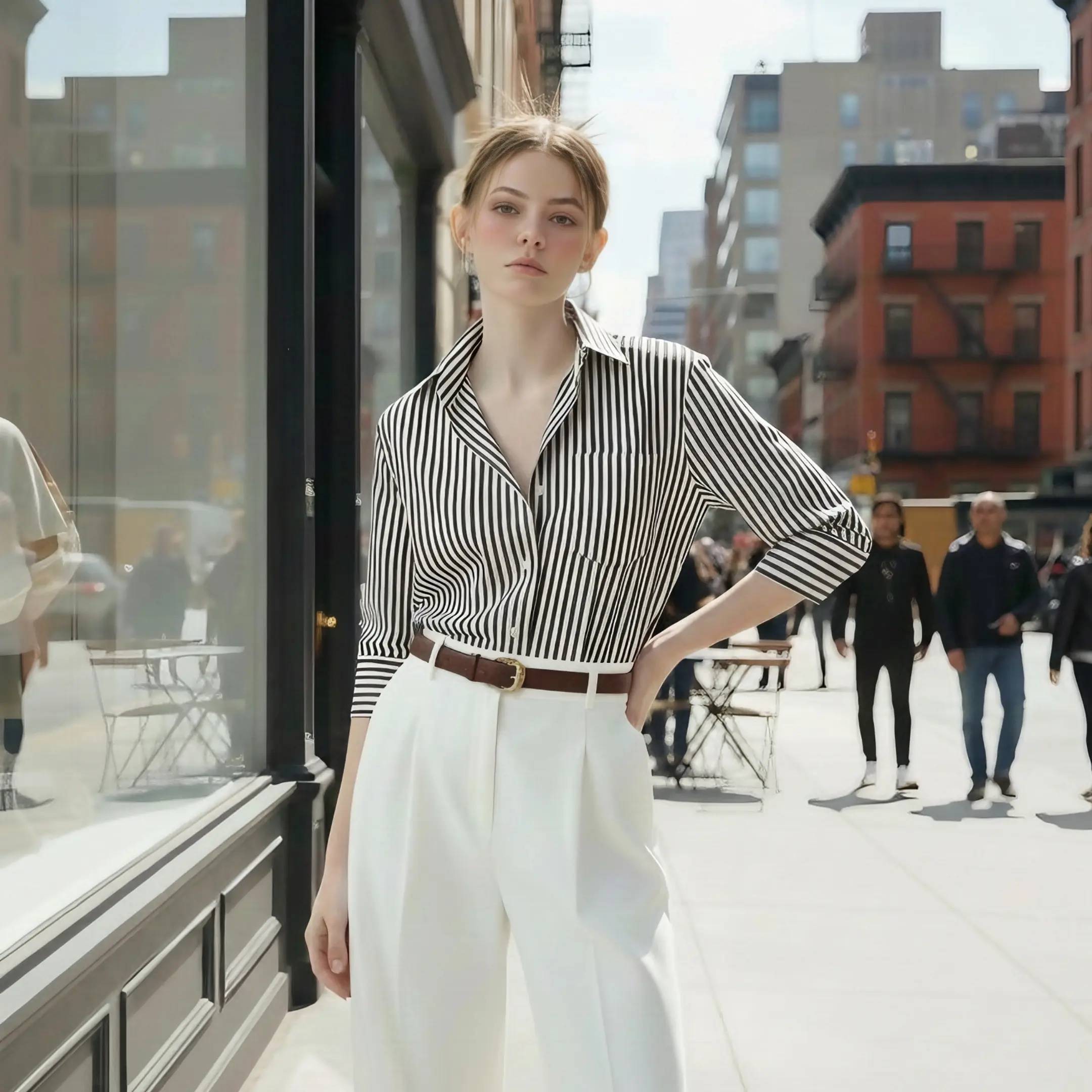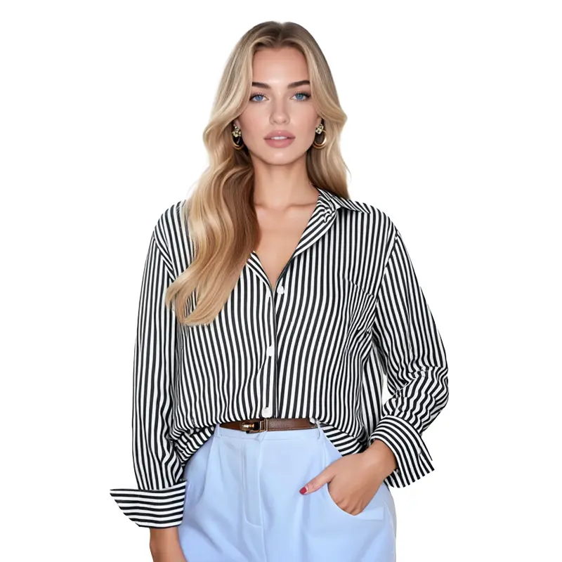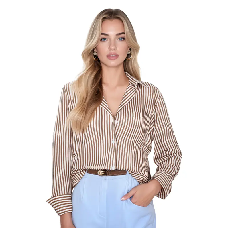✨ Wrinkle-Free and Breathable ✨ This striped shirt for women is made from wrinkle-free, non-iron, breathable fabric. The V-neck design with fashionable stripes enhances your charm effortlessly. The material ensures comfort and ease of wear.