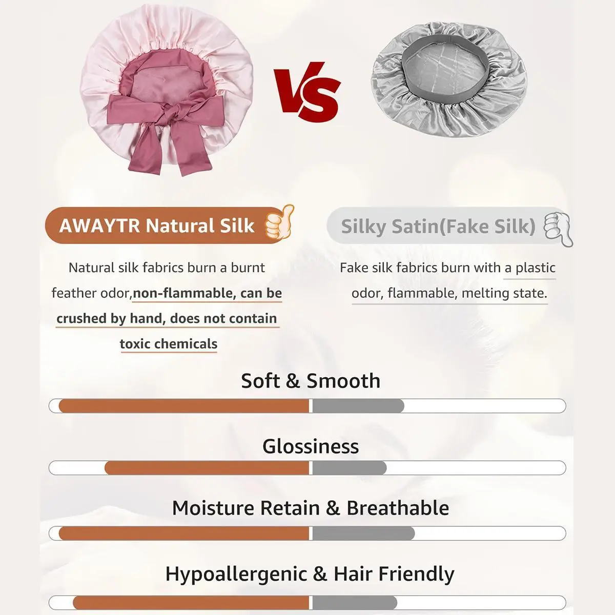 【GENTLE ON HAIR】: Made from premium 100% mulberry silk, this hair bonnet is soft and gentle on hair to prevent breakage and damage when sleeping.